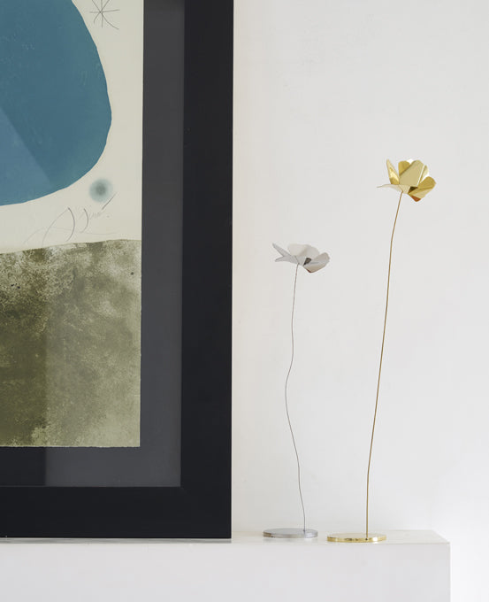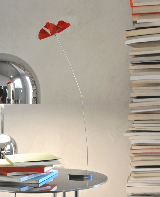 Papavero Delicato je výjimečná dekorace vytvořená Gherardem Frassou, která spojuje poetickou jemnost s trvanlivostí vznešených materiálů. Její forma inspirovaná mákem – květem svobody, krásy a křehkosti – se stává moderní sochou, která přitahuje pozornost a dodává interiéru umělecký charakter. Vyznačuje se ručně tvarovaným okvětním lístkem z oceli nebo mosazi a ohebným „stonkem“, který lze modelovat podle potřeby, čímž se přizpůsobí okolí.