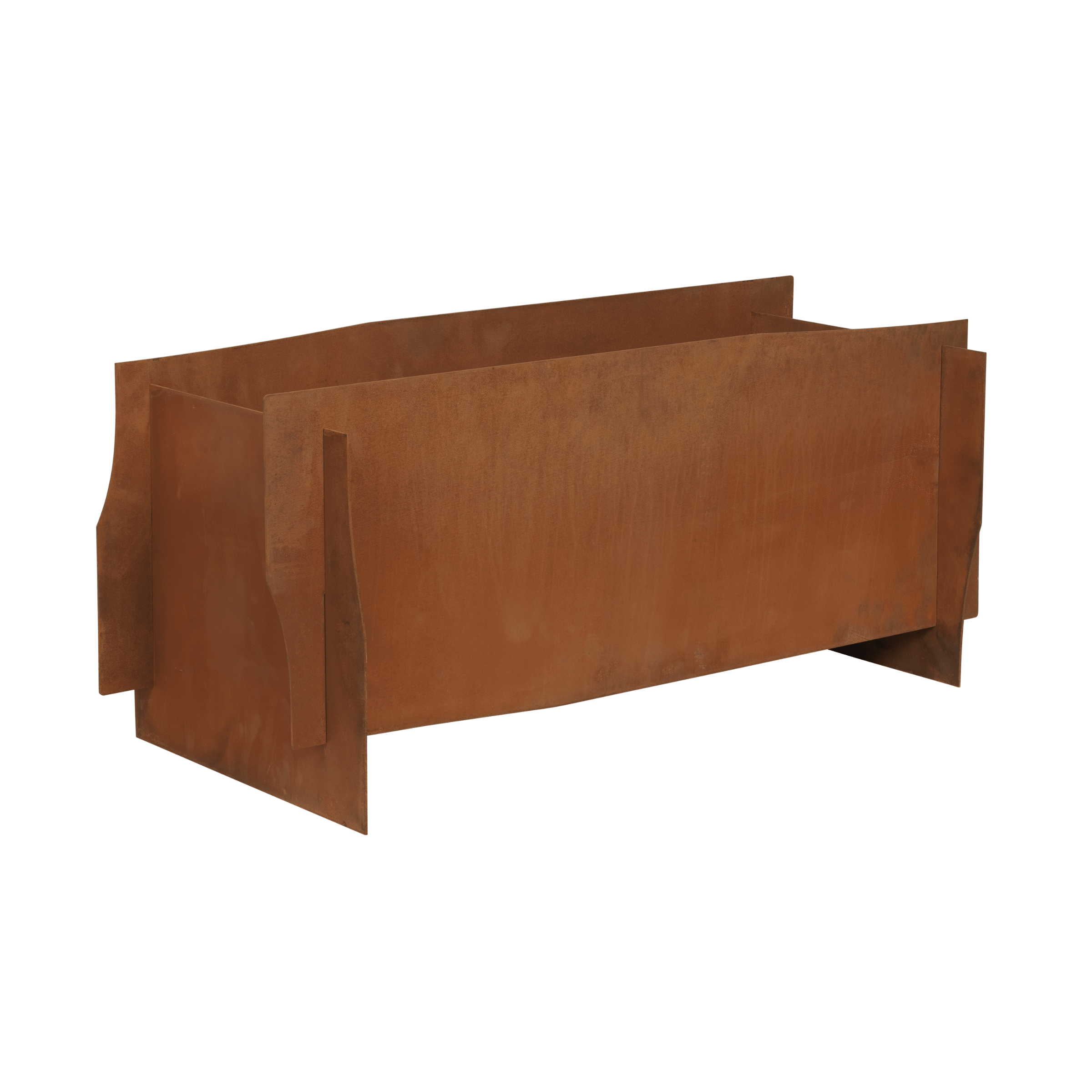 Váza Lapel je moderní zahradní forma vyrobená z odolné vůči povětrnostním podmínkám oceli Corten, která s časem získává jedinečný, rezavý vzhled. Skládající se z tenkých, proplétajících se plechů, vytváří vizuálně lehkou, a přitom stabilní konstrukci. Její asymetrická forma, inspirovaná roztrženým kartonem, dodává prostoru surový a designový charakter.