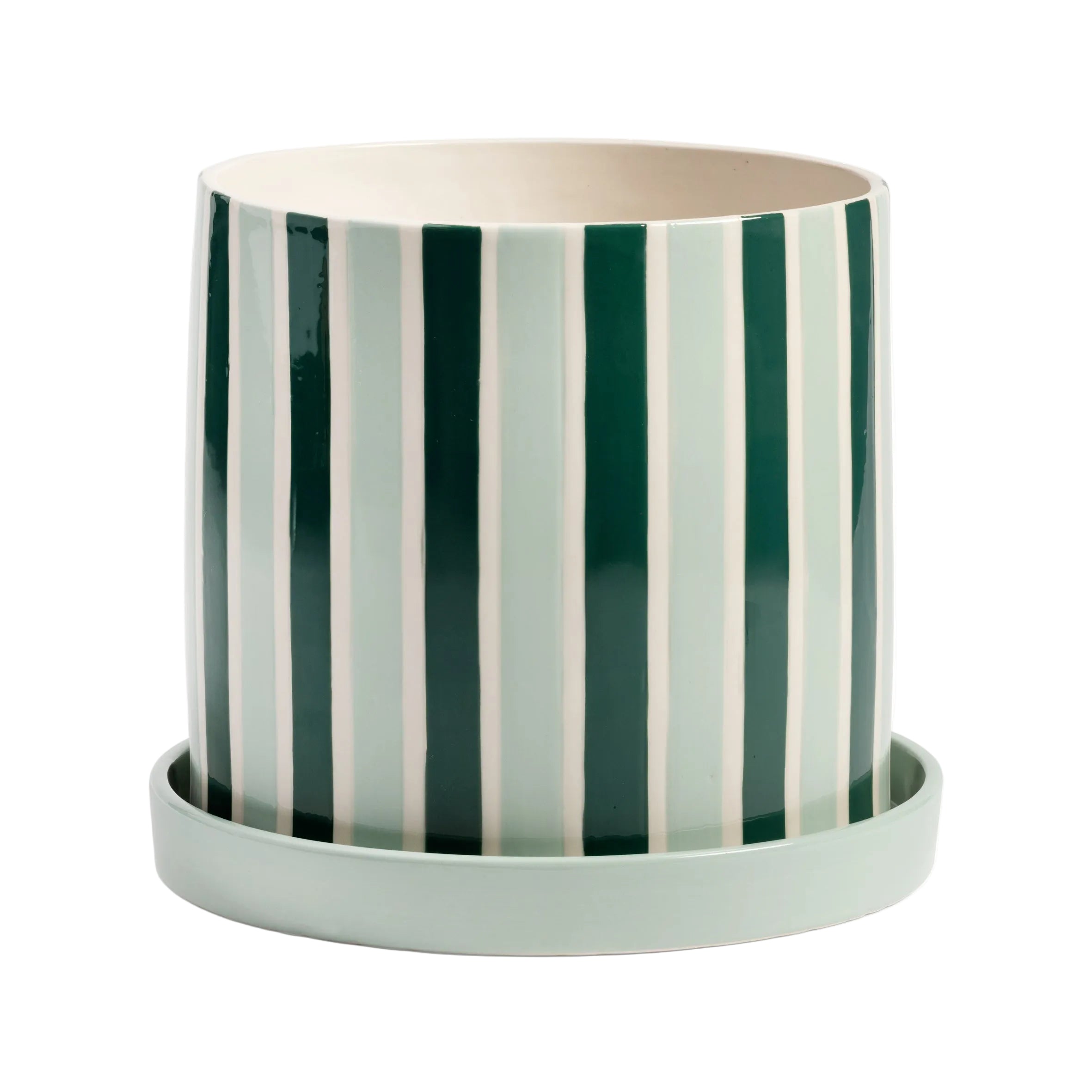Květináč CLASH STRIPE zelený s mátovou a bílou