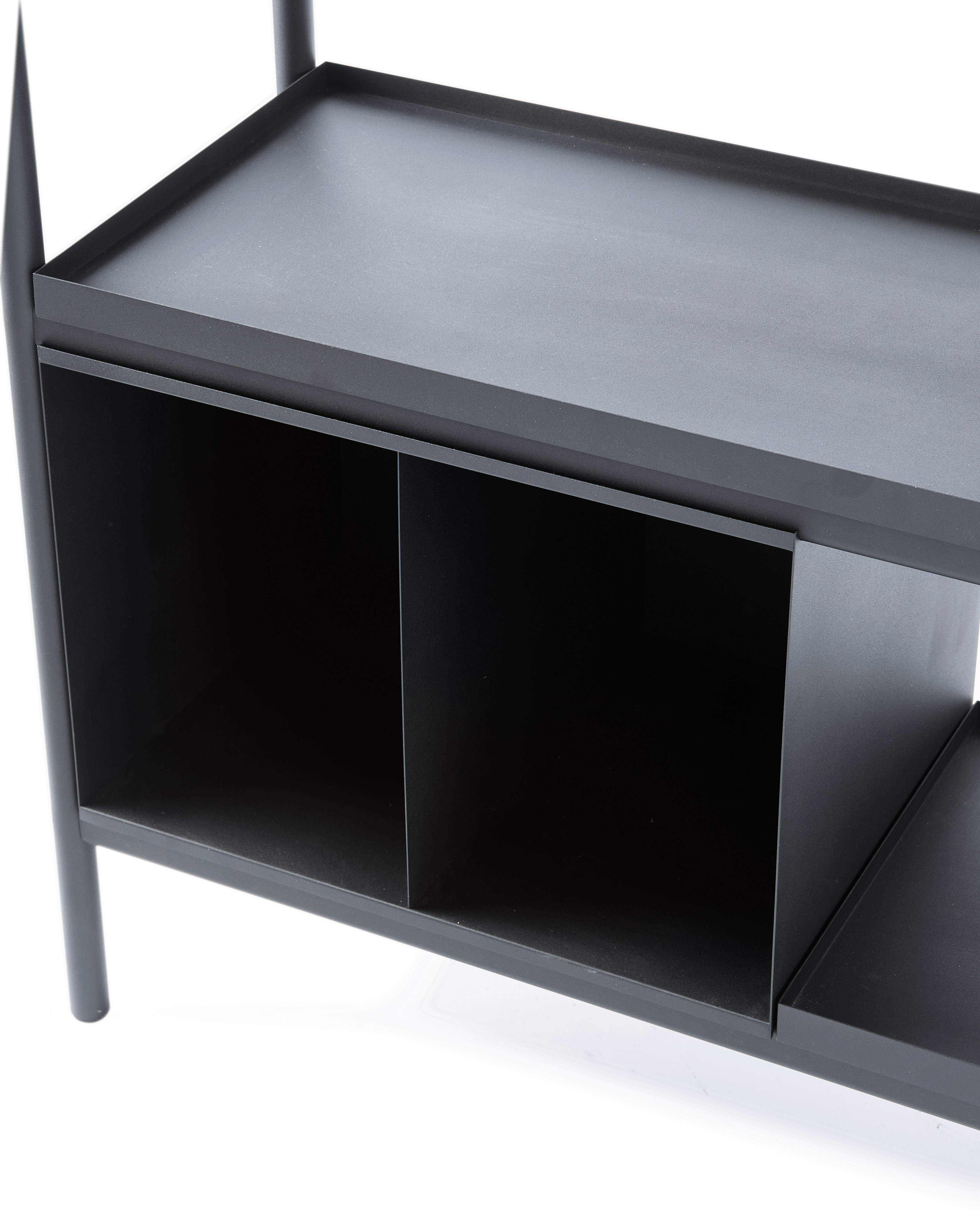 Regál Toss v černé barvě okouzluje svým industriálním stylem, který se dokonale hodí k neobyčejným interiérům. Tento projekt se vyznačuje nejen estetikou, ale také pevností provedení díky pečlivě vybraným materiálům a povrchové úpravě, které se vyznačují výjimečnou trvanlivostí. Díky tomu regál Toss nejen krásně vypadá, ale také slouží po mnoho let jako funkční a stylový doplněk do každého neotřelého interiéru.