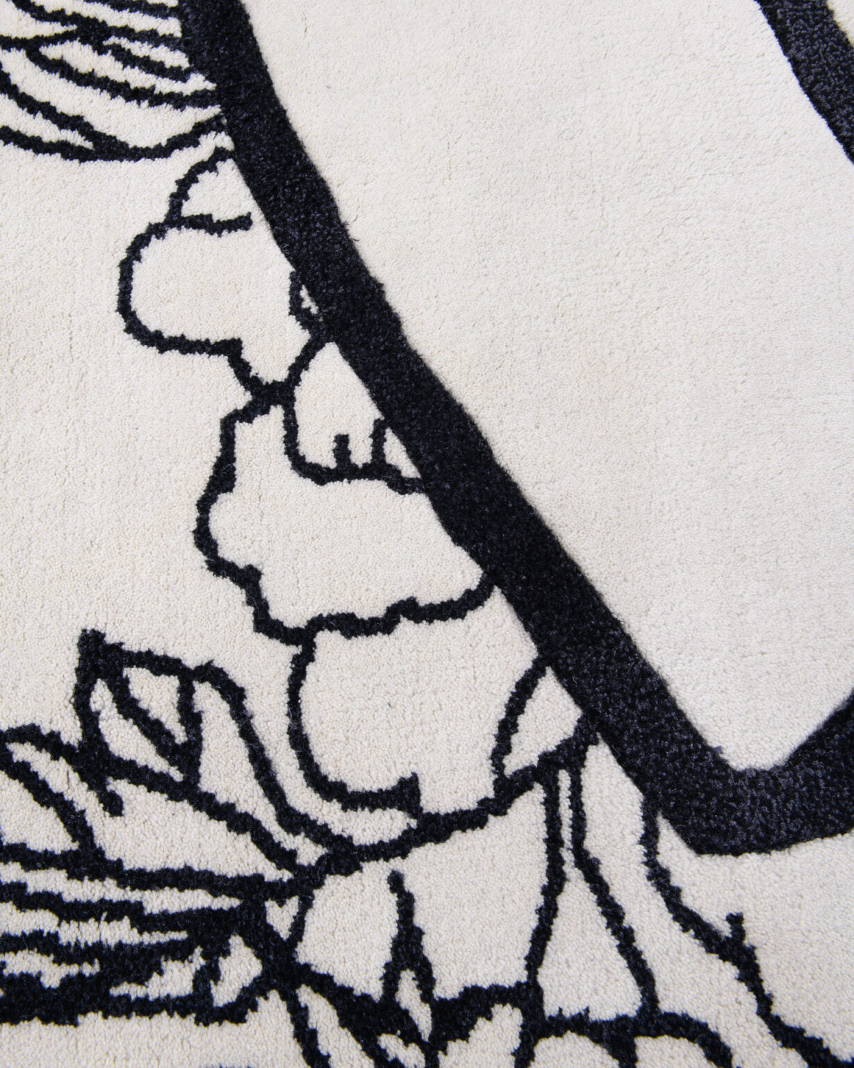 Ručně tkaný koberec z vysoce kvalitní česané vlny, a poté pečlivě stříhaný pro dosažení hloubky černých linií, koberec odráží výjimečnou úroveň řemeslné zručnosti. Každá linie je vědomě navržena, každá křivka vyvážená.