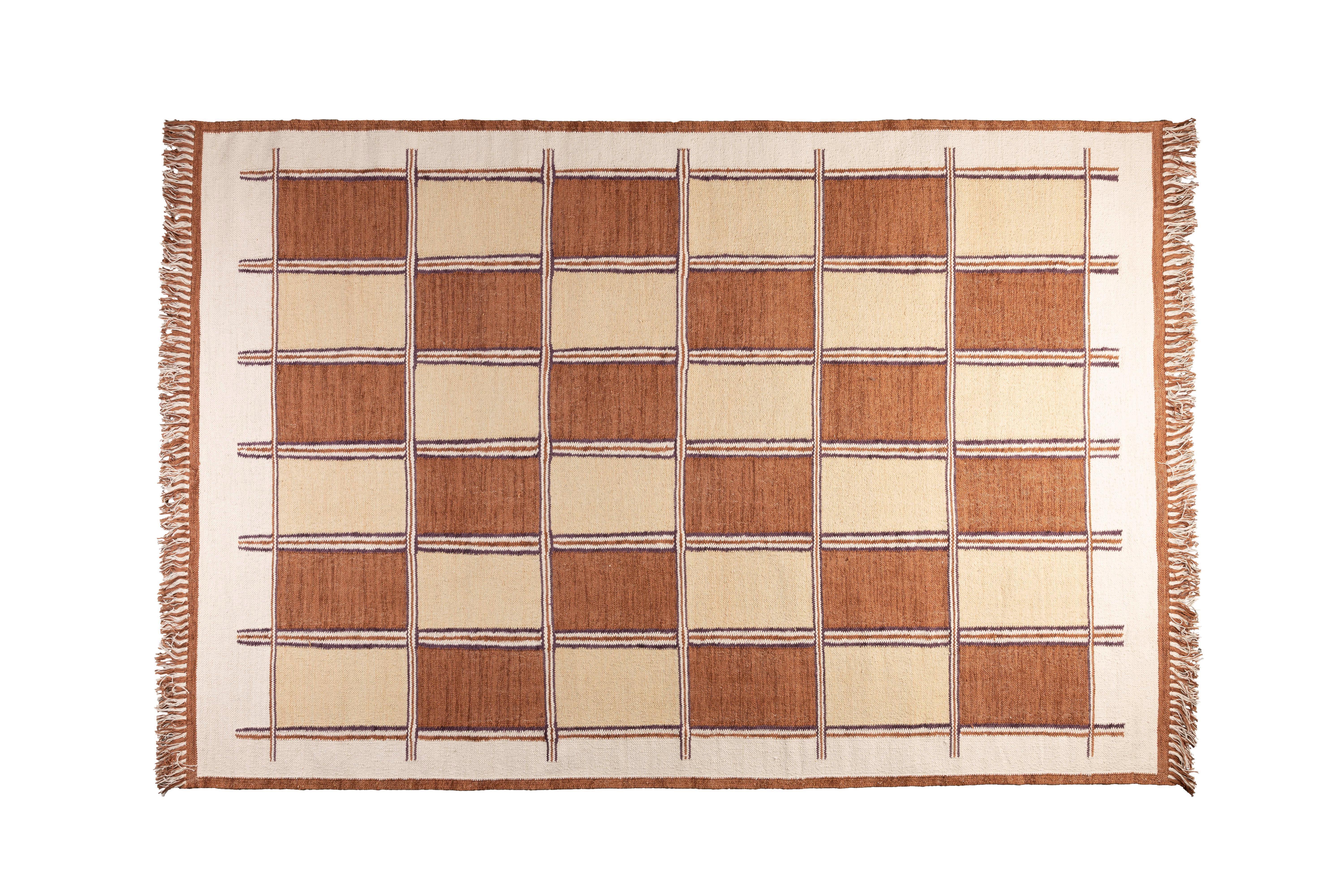 Koberec Gambit je vyroben z tkané bavlny a je k dispozici v různých velikostech. Nabízí poutavý, kostkovaný vzor, který dodává interiéru charakteristický a mírně retro vzhled. Ideálně se hodí k dekorativním polštářům ze stejné série, čímž vytváří soudržný a stylový prostor.