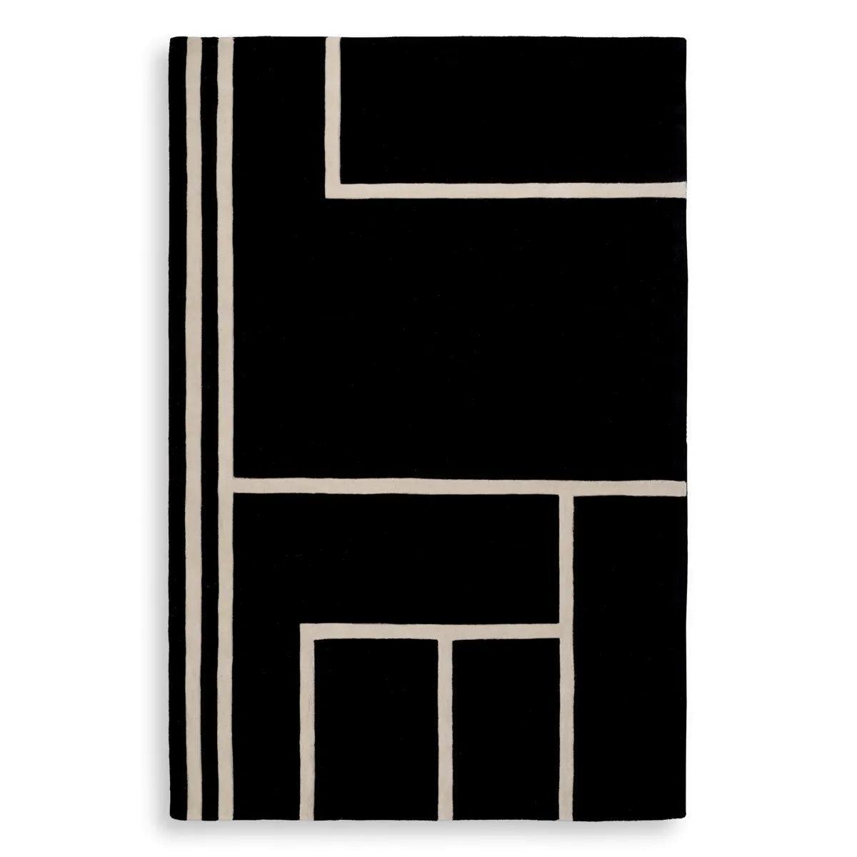 Ruční výroba pro dosažení nejlepších efektů, designový koberec Omar představuje odvážný geometrický vzor v kontrastních odstínech černé a zlomené bílé. Není to jen funkční dekorativní prvek, ale také výraz osobního stylu a elegance.