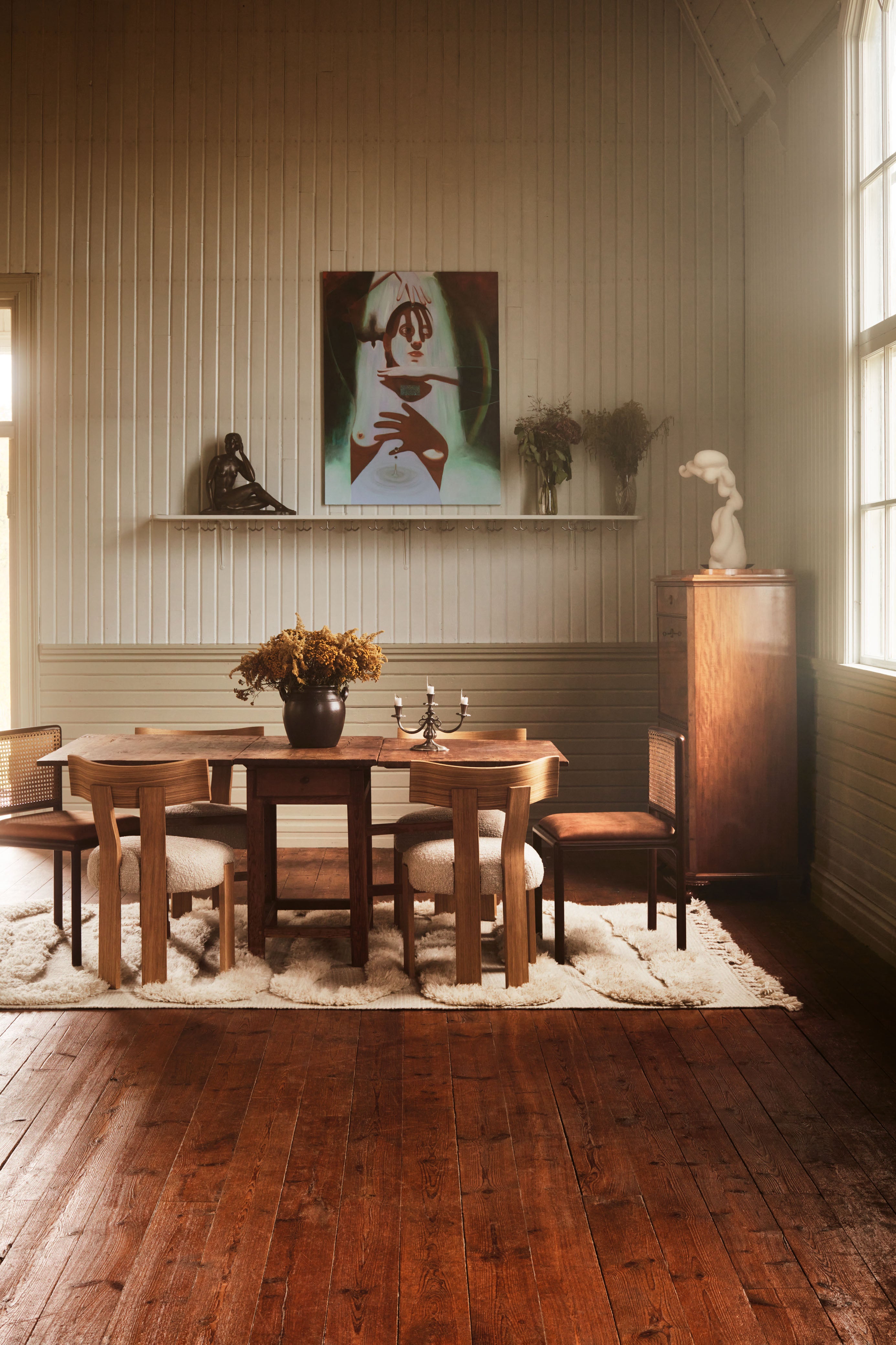 Dywan Snake Rya to ręcznie tkany model wykonany w 100% z wełny, który wyróżnia się oryginalnym wzorem przypominającym wijącego się węża. Zestawienie fragmentów o płaskim splocie z miękkimi, puszystymi partiami shaggy pile nadaje mu charakterystyczny efekt 3D, tworząc interesującą grę faktur i wysokości. Dzięki temu dywan staje się nie tylko praktycznym elementem wyposażenia, ale również wyjątkową dekoracją wnętrza.