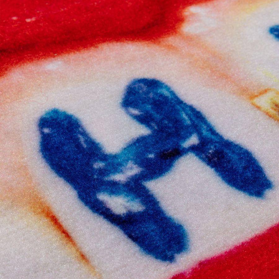 Centralnym elementem dywanu są wyraziste usta z widocznymi zębami, na których znajduje się napis Shit. To wyraźne przesłanie, które przyciąga uwagę i wywołuje ciekawość. Ten dywan jest znacznie więcej niż zwykły element wyposażenia - to dzieło sztuki, które mówi wiele.