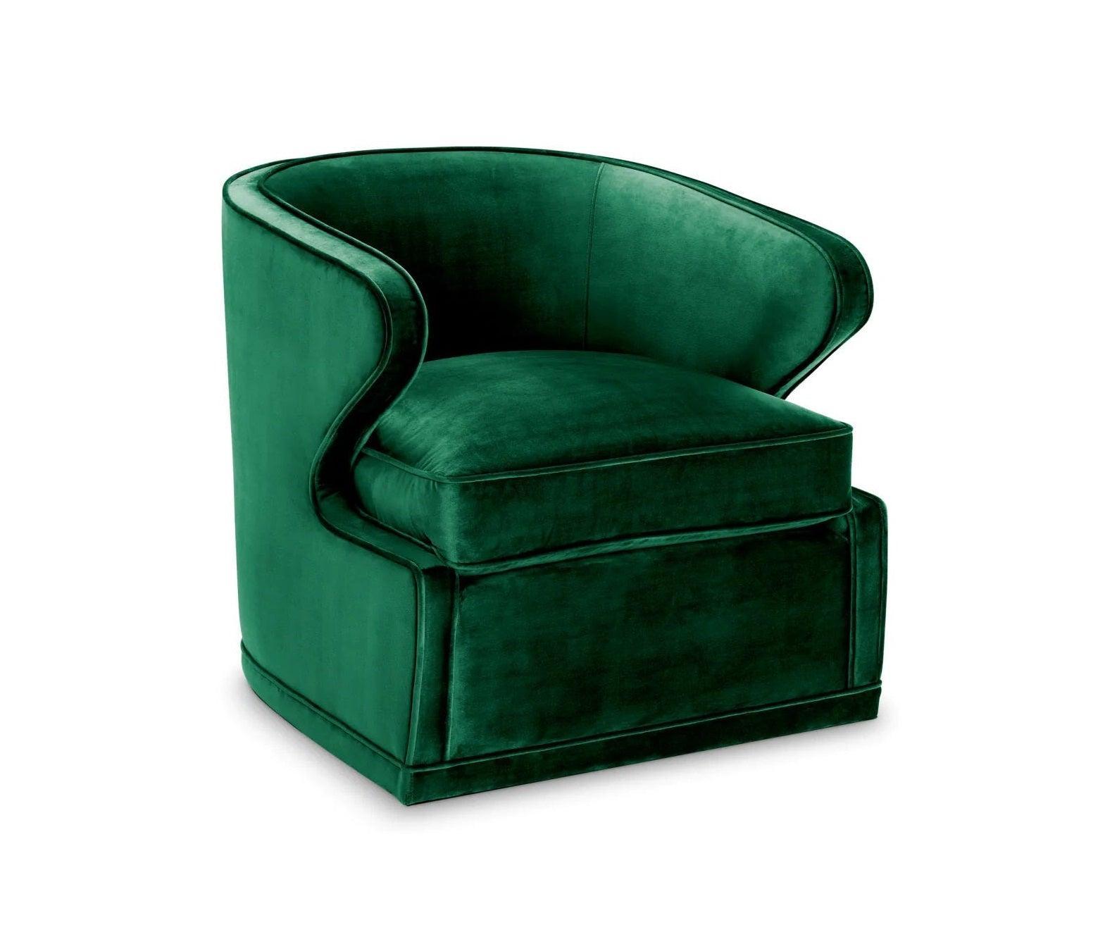 Křeslo sametové otočné DORSET tmavě zelené