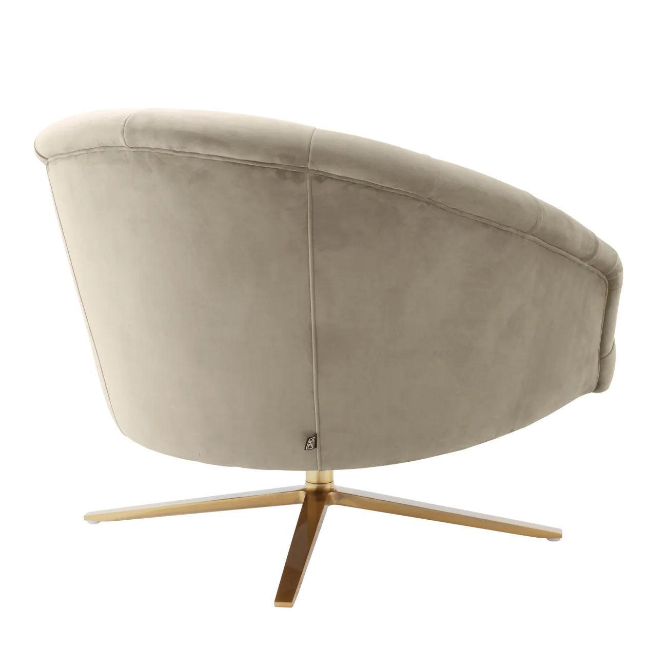Co víc, robustní rám béžového křesla zakončený otáčecí základnou ve tvaru kříže svědčí o pečlivém zpracování každého, i toho nejmenšího detailu. Povrchová úprava z kartáčovaného mosazi dodává celku charakter a určitou vznešenost, činí designové křeslo Gardner nejen pohodlným, ale také nesmírně stylovým doplňkem do každého interiéru.