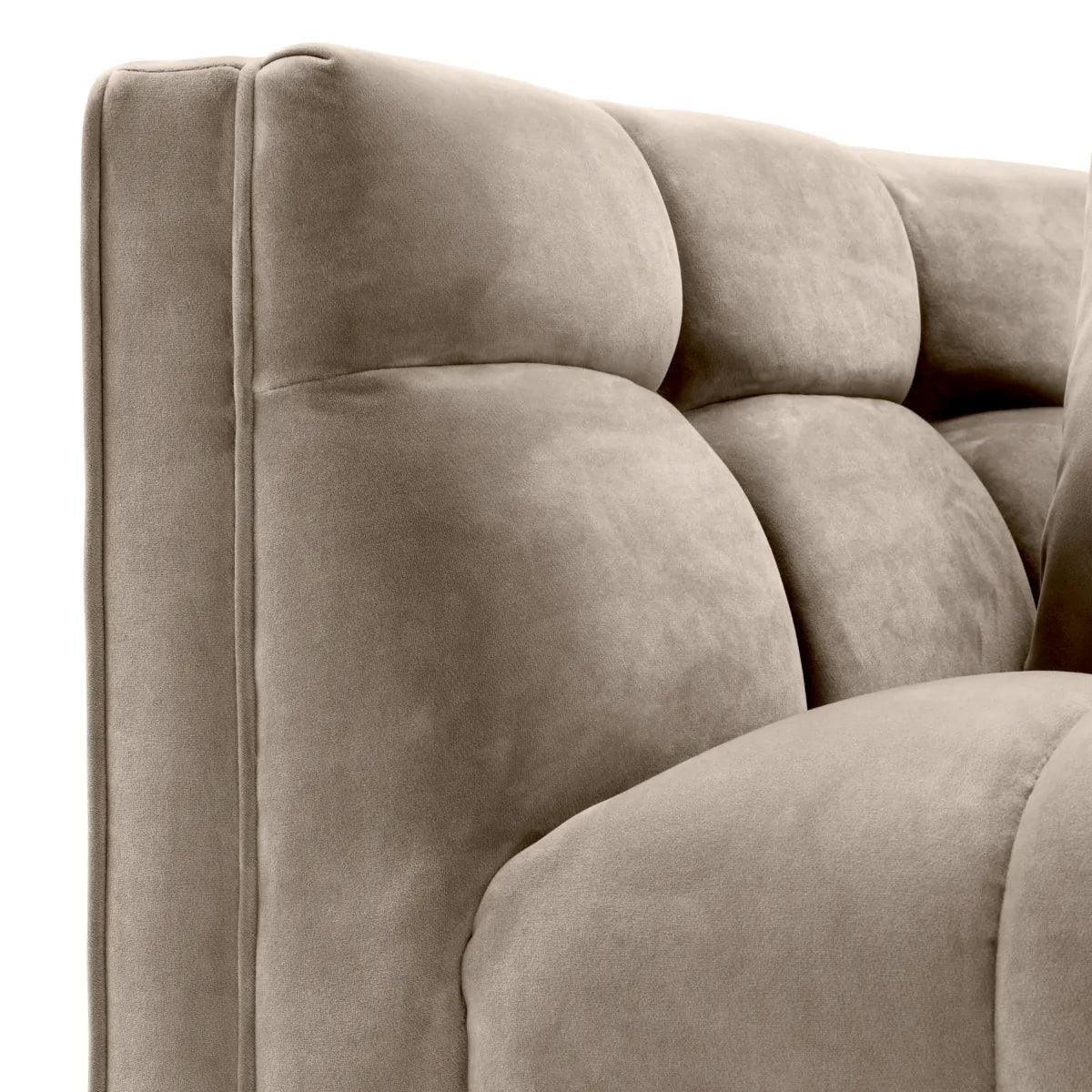 Prošívaný potah z béžového sametu Savona mu dodává eleganci a pocit luxusu. Dvě čtvercové polštáře nejen zdůrazňují estetiku křesla, ale také zaručují dodatečné pohodlí při sezení, což z něj činí ideální místo pro chvíle odpočinku.