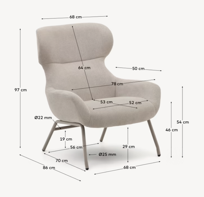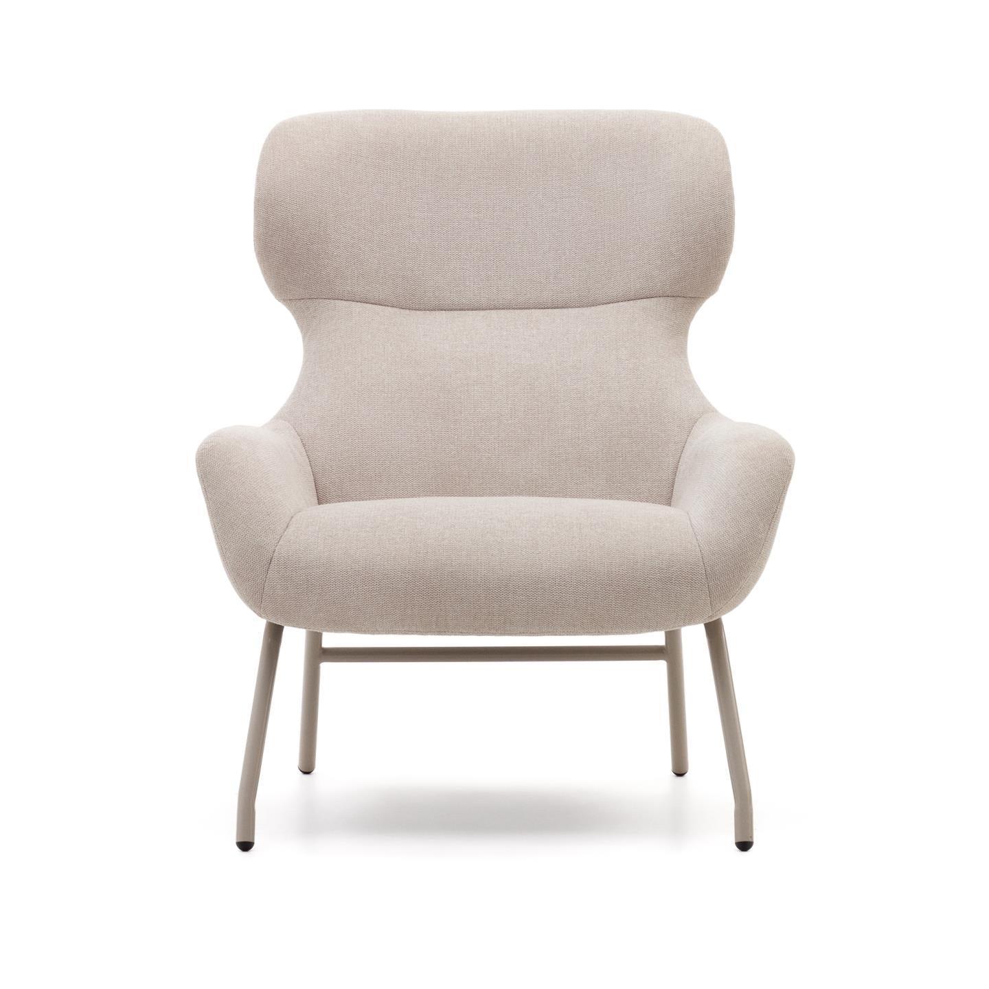 Ocelové nohy s černým povrchem nejenže dodávají béžovému křeslu moderní charakter, ale také zajišťují stabilitu a trvanlivost. Detaily jako tyto podtrhují vysokou kvalitu Beliny, čímž se stává nejen místem k odpočinku, ale také dekorativním prvkem, který obohacuje interiér svým jedinečným designem.