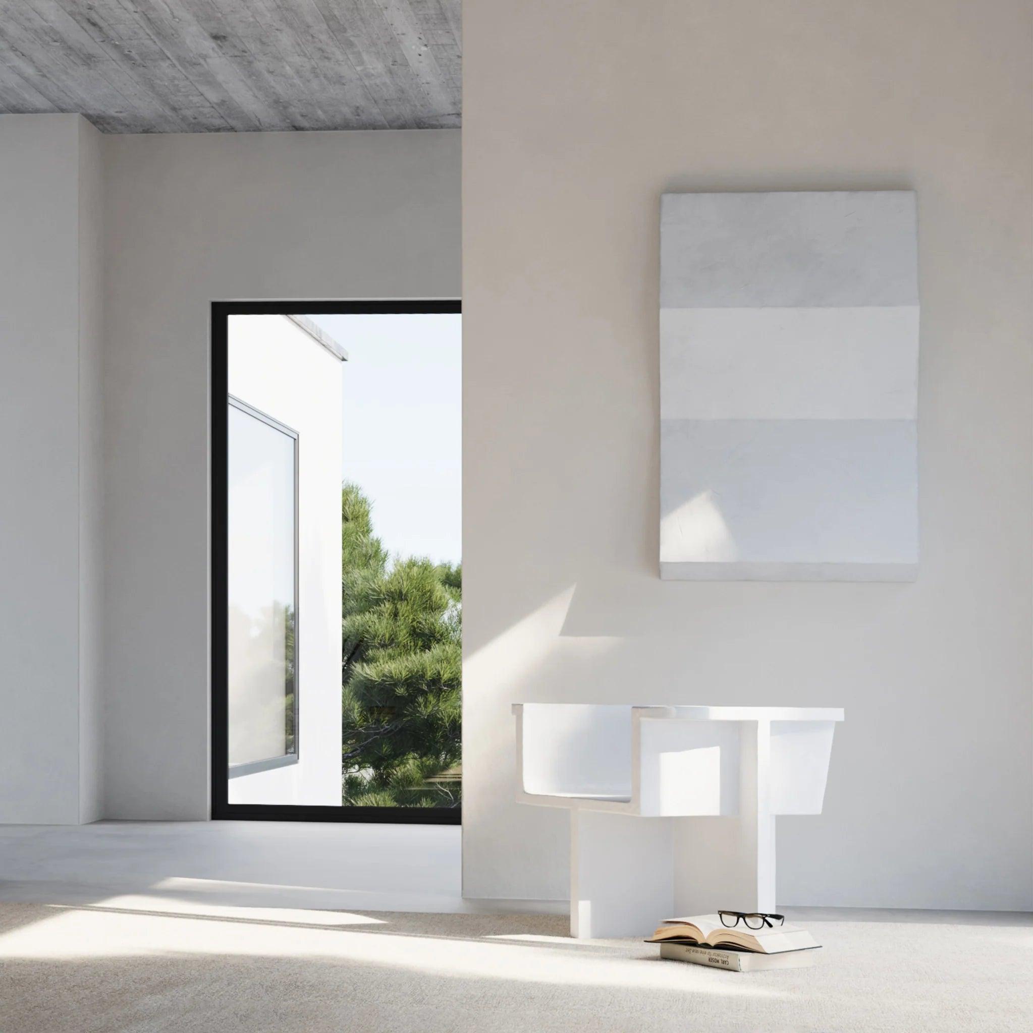 Odkazující na tradiční japonské dřevěné stoličky, zakřivené sedadlo a charakteristické zkřížené nohy představují ideální dodatečné místo k sezení kolem stolu. Každý prvek je ručně malovaný, aby vytvořil texturovaný, jedinečný povrch. Zdůrazňující jemnou rovnováhu mezi ostrými architektonickými liniemi a poněkud mírnější křivkou opěradla a područek, kolekce Brutus představuje výrazné sochařské prvky zajišťující okouzlující komfort sezení.