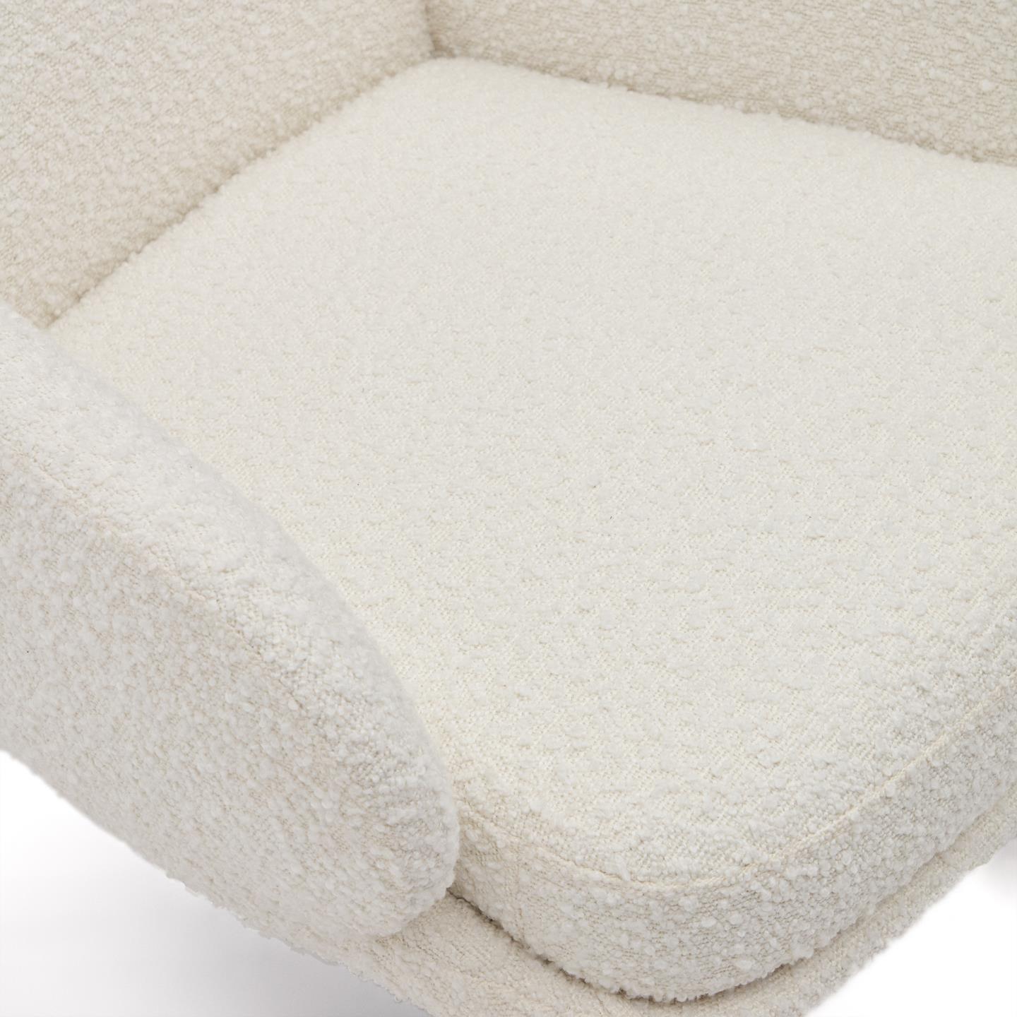Bílé houpací křeslo z tkaniny boucle Maustin není jen nábytek; je to oáza klidu, která láká k ponoření se do chvil odpočinku. Dopřejte si luxus výjimečného designu a pohodlí tím, že si vyberete Maustin jako svého oblíbeného společníka na odpočinek.
