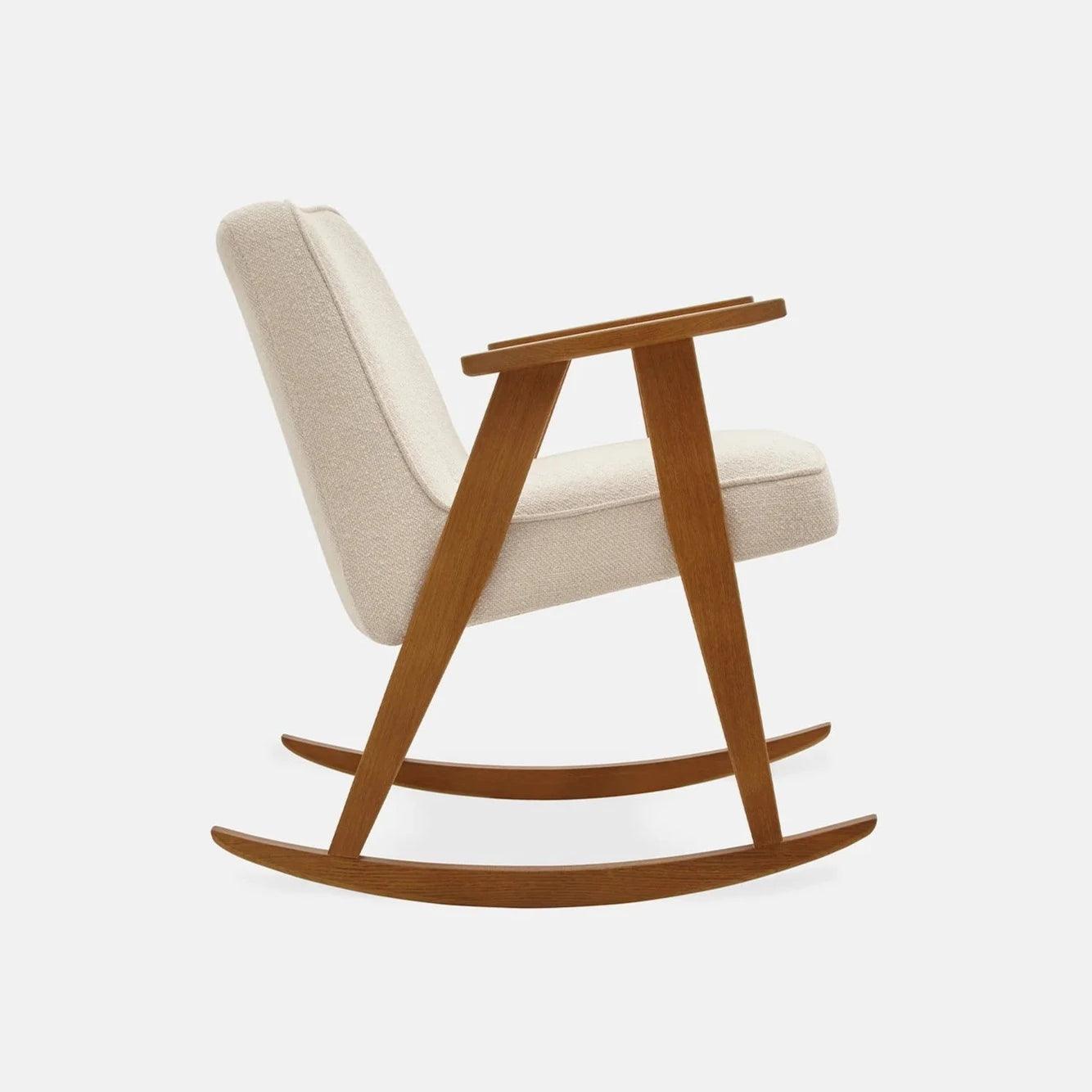 Houpací křeslo 366 v látce Boucle Creme je nábytek pro ty, kteří rádi odpočívají v pohybu. Jeho jemné houpání umožňuje relaxaci a uvolnění, což z něj dělá ideální křeslo do obývacího pokoje, ložnice nebo knihovny. Toto křeslo se také skvěle hodí do dětského pokoje, kde poskytne malému uživateli spoustu radosti a zábavy.