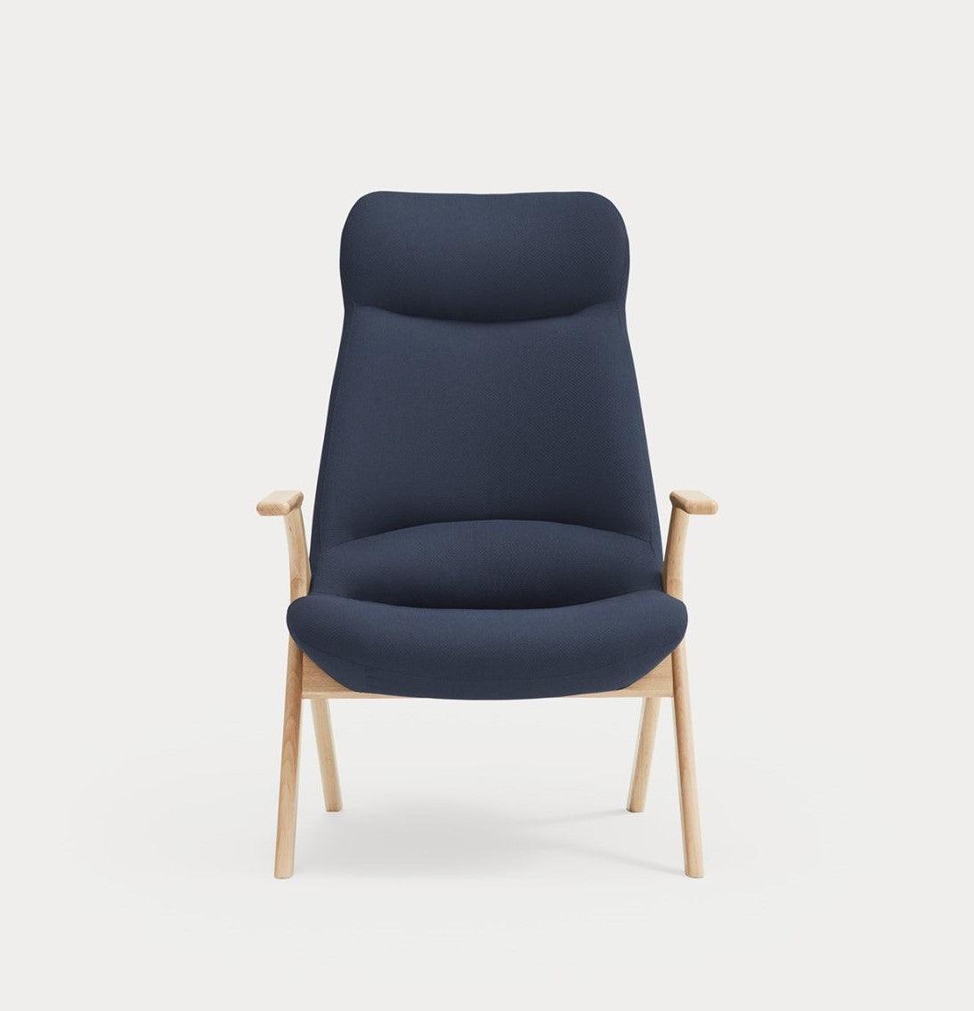 Křeslo DINS vysoké tmavě modré s dřevěnou základnou