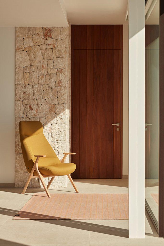 Vysoké křeslo Dins v tmavě modré barvě je nábytkem, který spojuje dvě protichůdné koncepce, jež koexistují v harmonii proporcí. Jemnost a teplo dřevěné konstrukce křesla Dins jsou plně integrovány s prostorným čalouněným korpusem, který se vyznačuje vyšší opěrkou než standardní křesla.