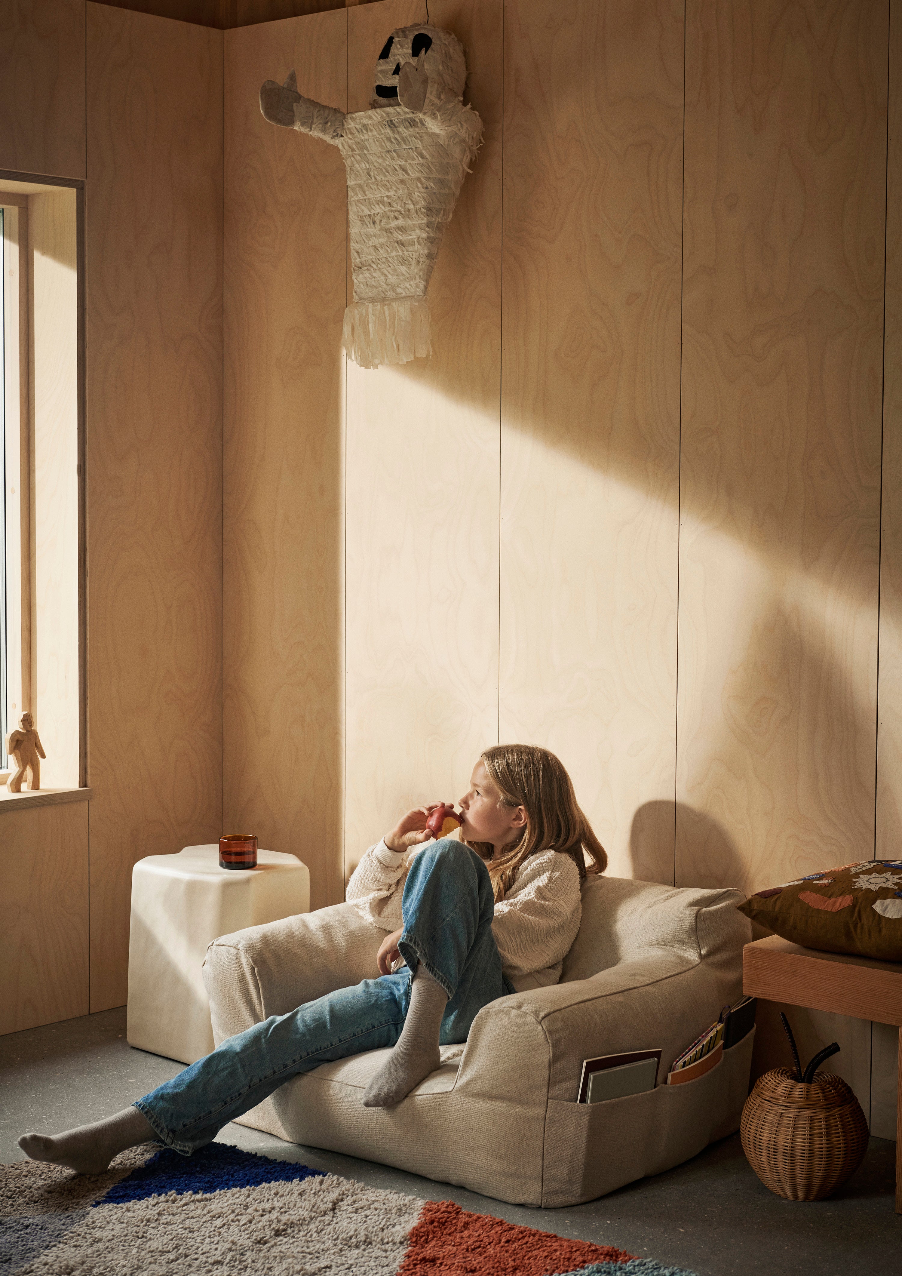 Křeslo Billow Bean Bag je měkké, útulné sezení navržené pro chvíle odpočinku a zklidnění. Díky nízké a hluboké konstrukci poskytuje maximální komfort, stává se ideálním místem pro čtení knih, odpočinek nebo hraní. Potah z certifikované, organické bavlny (GOTS) má praktickou kapsu se třemi přihrádkami na boku – skvělou pro ukládání knih, hraček a drobností.