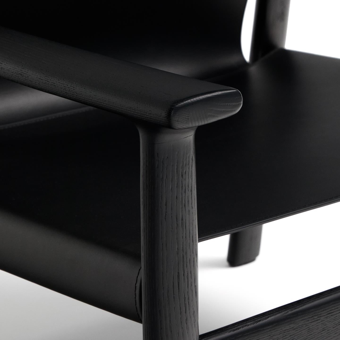 Fotel JAN czarna skóra z recyklingu z czarnym drewnem jesionowym