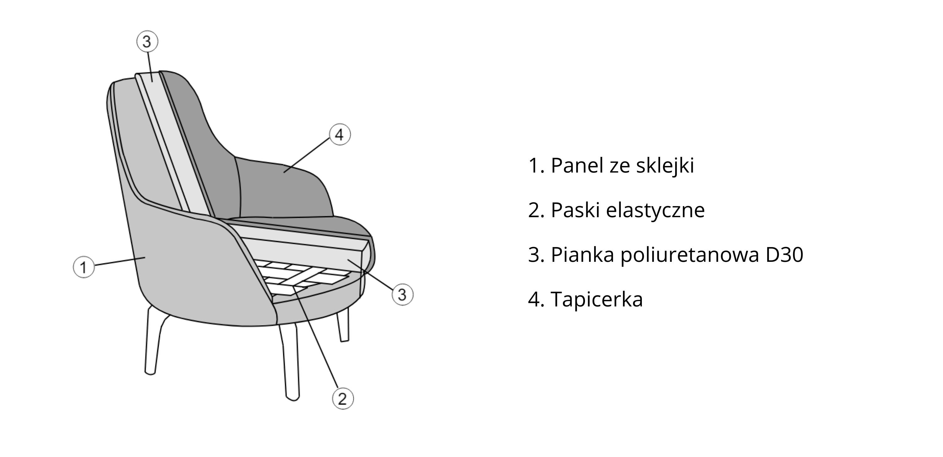 Křeslo Medea s tradičním designem a čtyřmi nezávislými nožkami z jasanového dřeva a krásnou potahovou látkou. Křeslo má měkké a přizpůsobené opěradlo a pohodlné sedadlo, které zajišťuje komfort a trvanlivost.