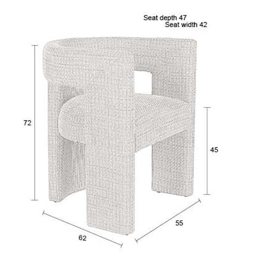 Fotel Medina to połączenie wyjątkowego stylu vintage z nowoczesnym komfortem. W całości tapicerowany grubą, plecioną tkaniną, natychmiast przyciąga uwagę i zaprasza do odpoczynku. Jego ciepła, przytulna forma w odcieniu off white wprowadza do wnętrza elegancję i naturalną miękkość. Dzięki charakterystycznemu, trójnożnemu projektowi fotel Medina stanowi wyrazisty element aranżacji, który doskonale uzupełni jadalnię, salon lub przestrzeń biurową, nadając im przytulny i stylowy charakter.