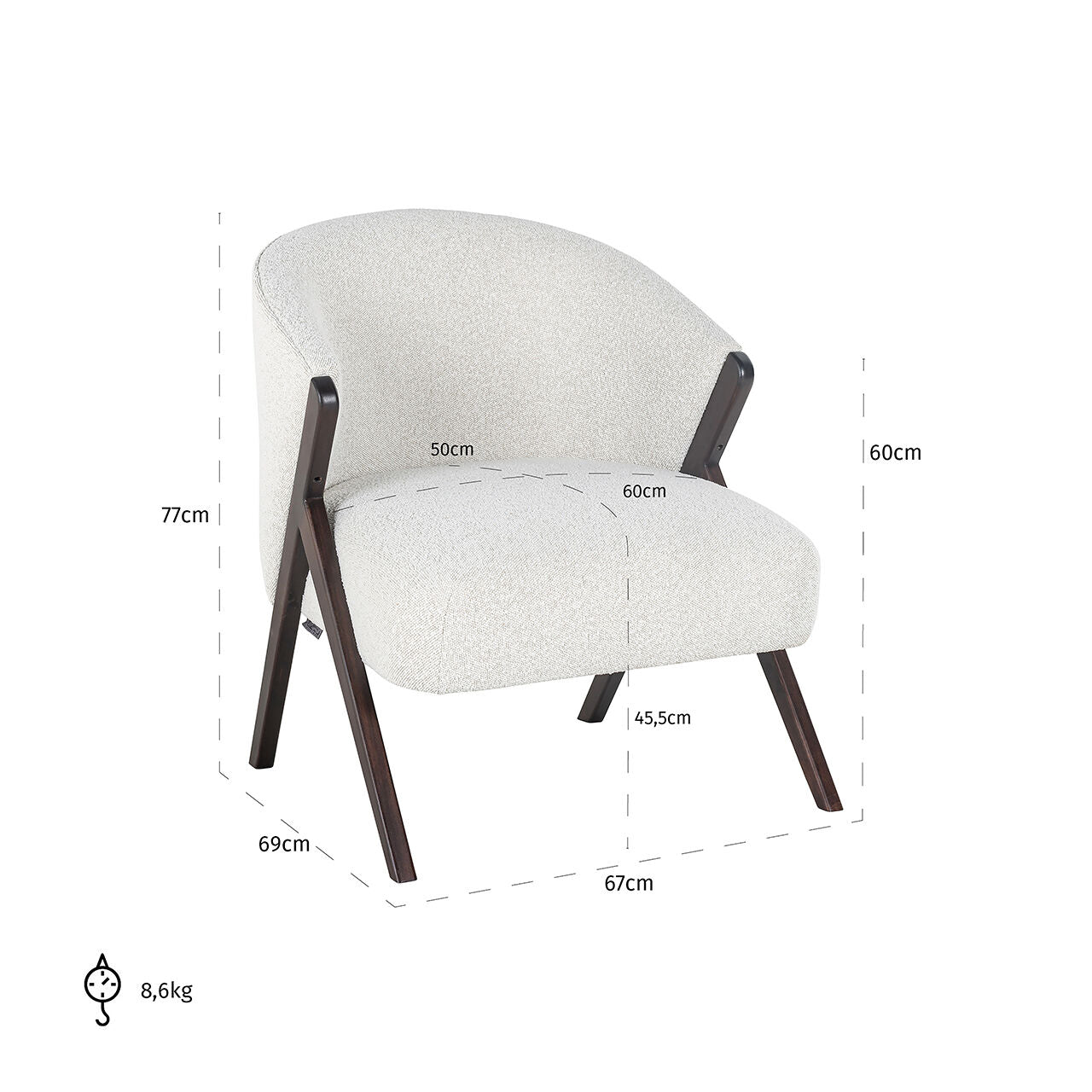 Fotel Mia emanuje wyjątkowym, luksusowym wyglądem, który przyciąga wzrok i dodaje prestiżu każdemu wnętrzu. Jego elegancja tkwi w wyjątkowej tkaninie, którą jest tapicerowany - białej tkaninie bouclé. Ta tkanina nadaje fotelowi nie tylko piękny wygląd, ale również delikatny i ciepły charakter. Bouclé, znane z miękkości i przewiewności, nie tylko wygląda wyjątkowo, ale też jest ostatnio bardzo modnym wyborem we wnętrzarskich aranżacjach, co czyni Mia jeszcze bardziej pożądanym elementem.