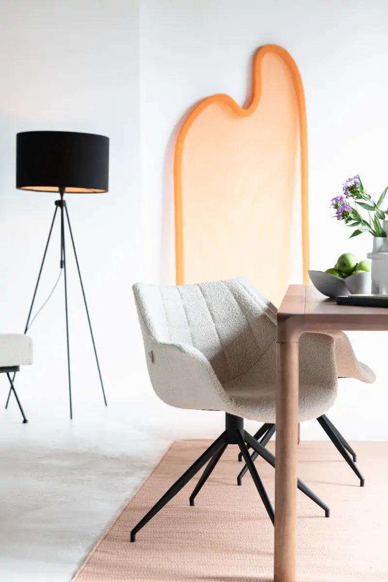 Otáčecí křeslo Doulton se skládá z minimalistické základny, která je spojena s prostorným sedadlem potaženým tkaninou bouclé. Funkčnost, pohodlí a útulnost v jednom.