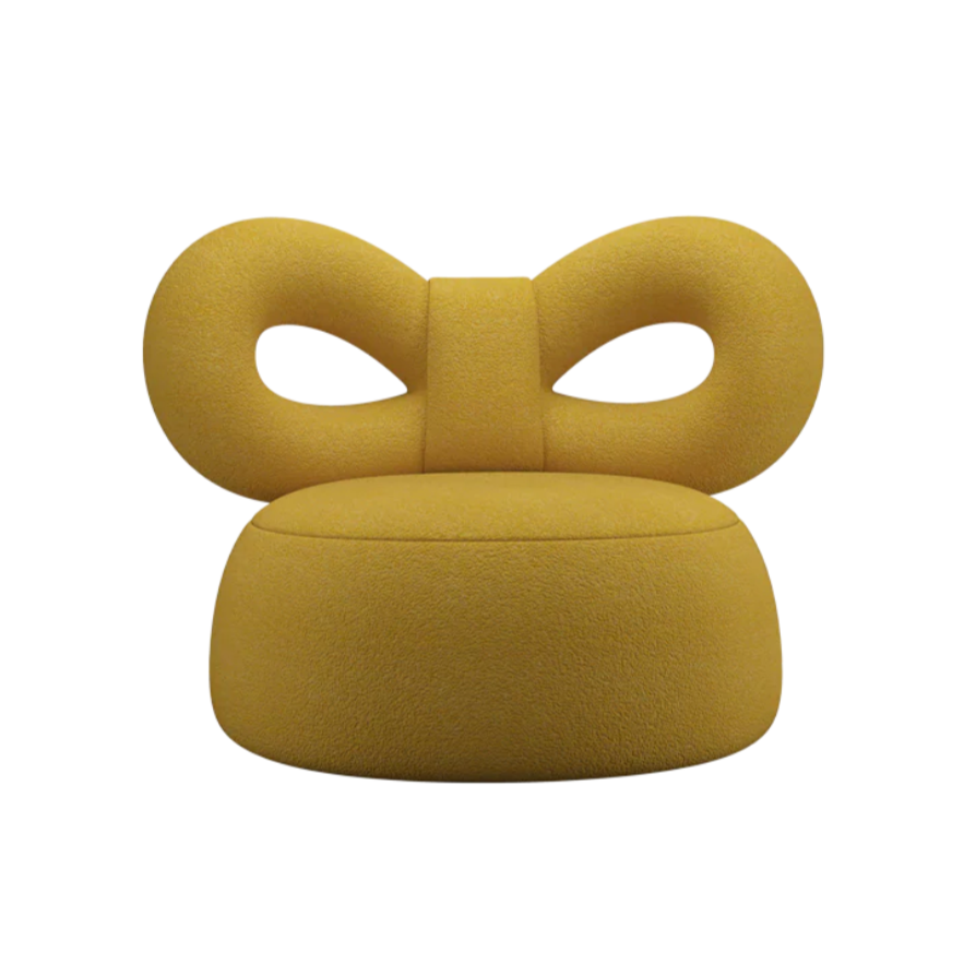 Křeslo Ribbon spojuje ženskou jemnost s moderní formou. Charakteristické opěradlo ve tvaru mašle přitahuje pozornost a dodává nábytku romantický výraz. Vyrobeno z polyuretanové pěny a potaženo látkou Mario Sirtori "Orsetto stretch", zajišťuje výjimečný komfort a měkkost, vyzývající k okamžikům relaxace v stylovém prostředí.