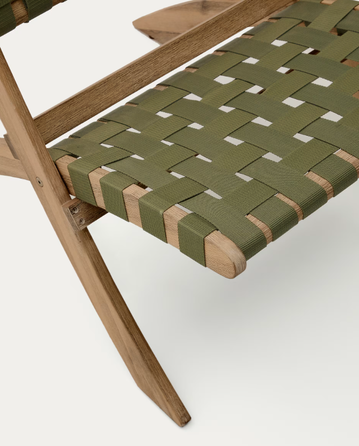 Skládací zahradní křeslo CHABELI z akáciového masivu se zeleným povrchem