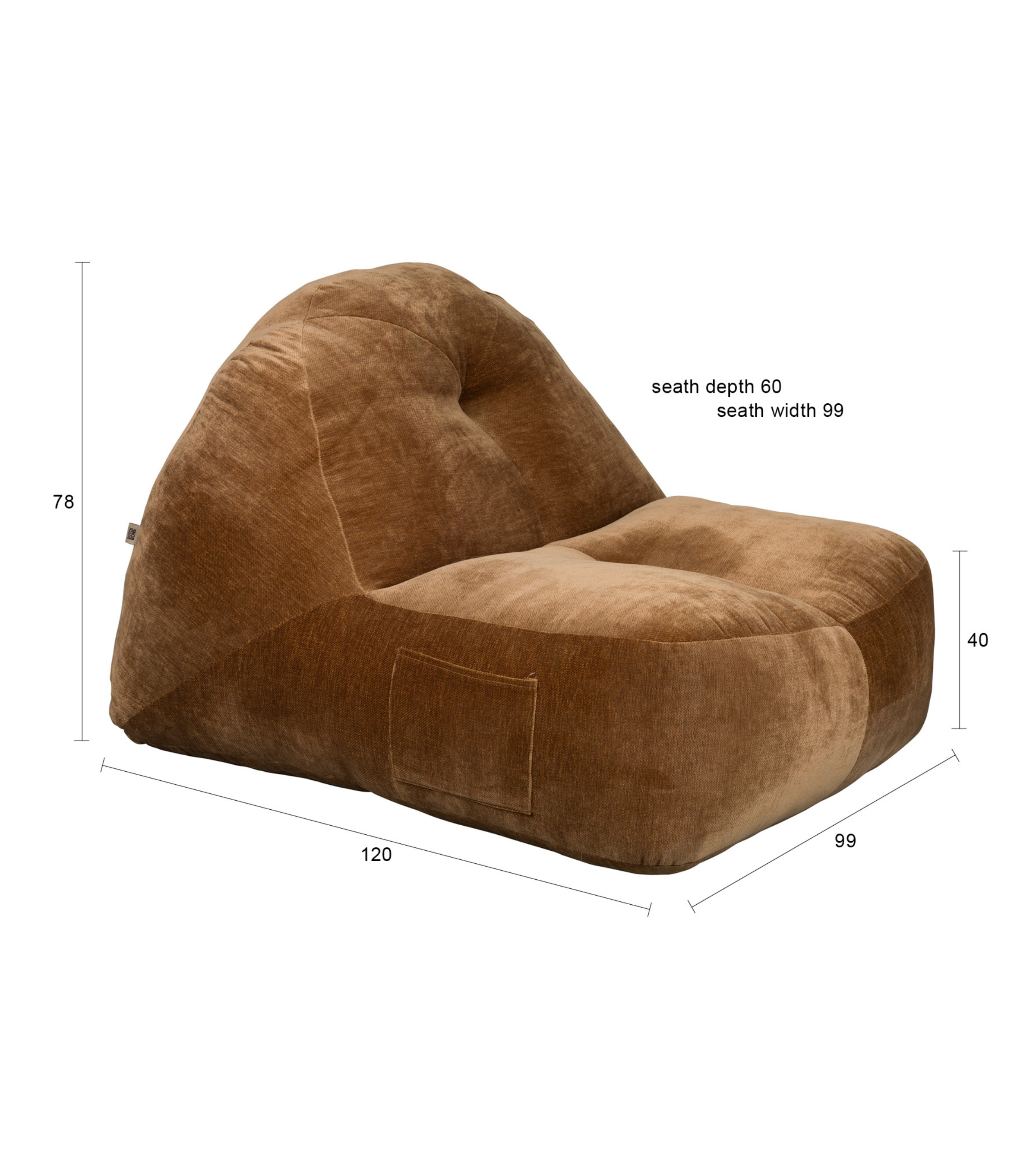 Tombag je křeslo, které poskytuje maximální komfort a stylový vzhled v jednom. Měkká, sametová potahová látka v hlubokém odstínu hnědé odkazuje na estetiku 70. let, přinášející do interiéru útulnost a teplo. Ideální pro vytvoření relaxačního koutku – skvěle se hodí jako místo k sezení pro čtení, odpočinek nebo filmový večer.