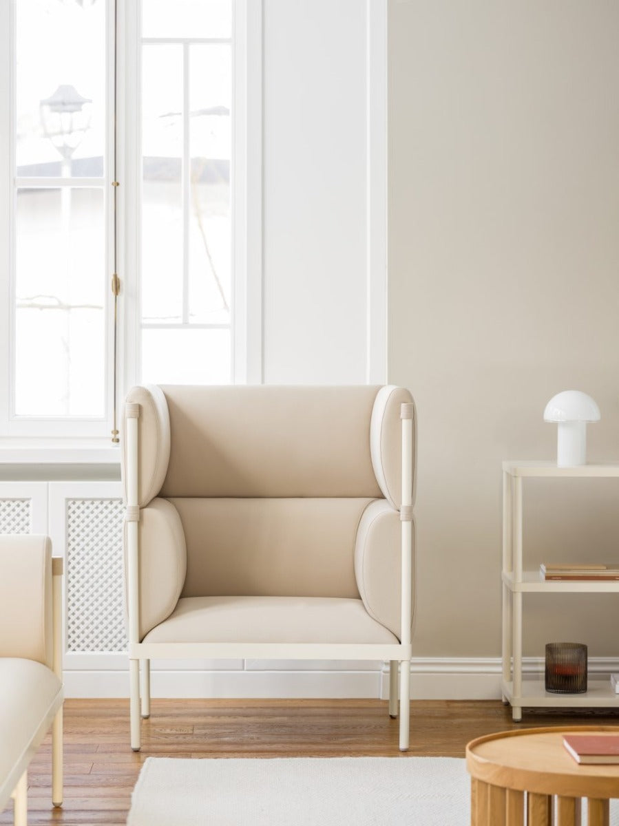 Univerzálnost křesla Stilt zajišťuje, že se skvěle hodí do různých typů interiérů – od domácích obývacích pokojů, přes kancelářské relaxační zóny, až po veřejné prostory. Vysoké nohy křesla usnadňují sezení a vstávání, a vysoké opěradlo účinně odděluje sedícího od vnějších podnětů, vytvářející ztišenou a soukromou zónu, ideální pro odpočinek nebo soustředění.