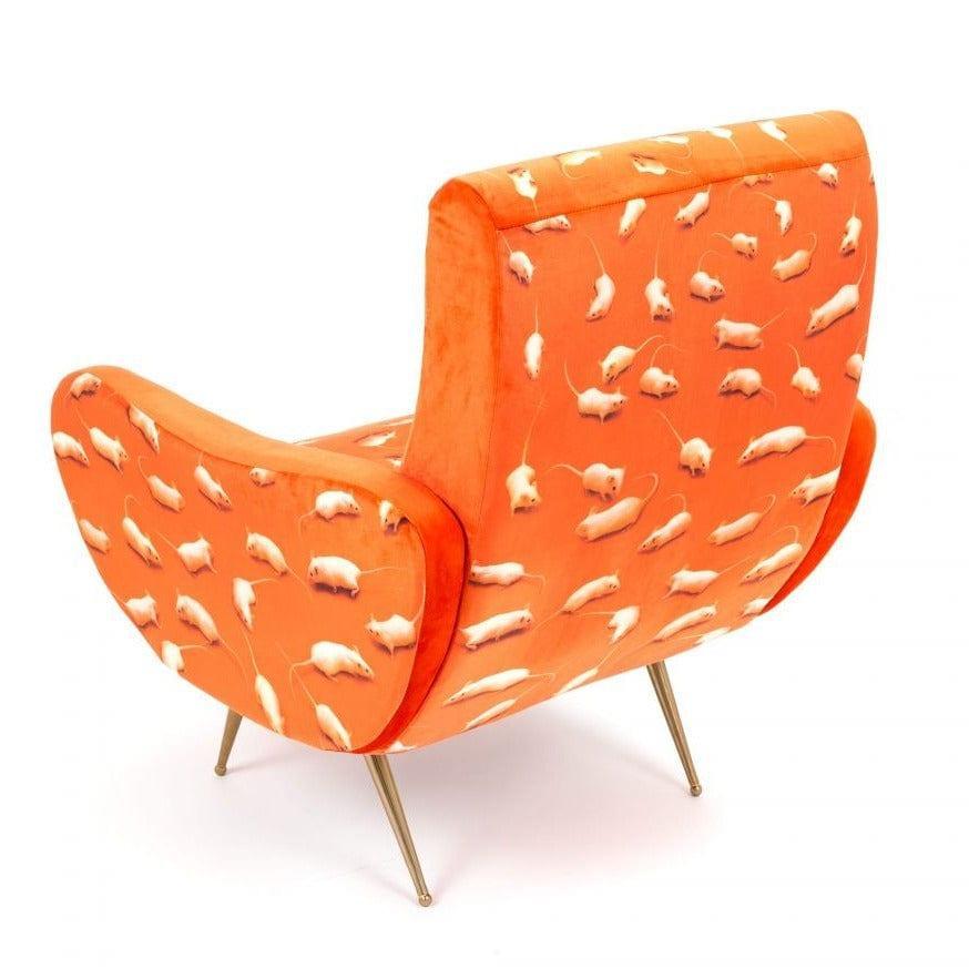 Designerské křeslo ve stylu 50. let od italského krále avantgardy — Seletti, které jako brána do jiného, surrealistického rozměru dodá interiéru jedinečný charakter. Čalounění v výrazných, dynamických barvách a mírně kontroverzní koláž tvoří originální umělecké dílo.