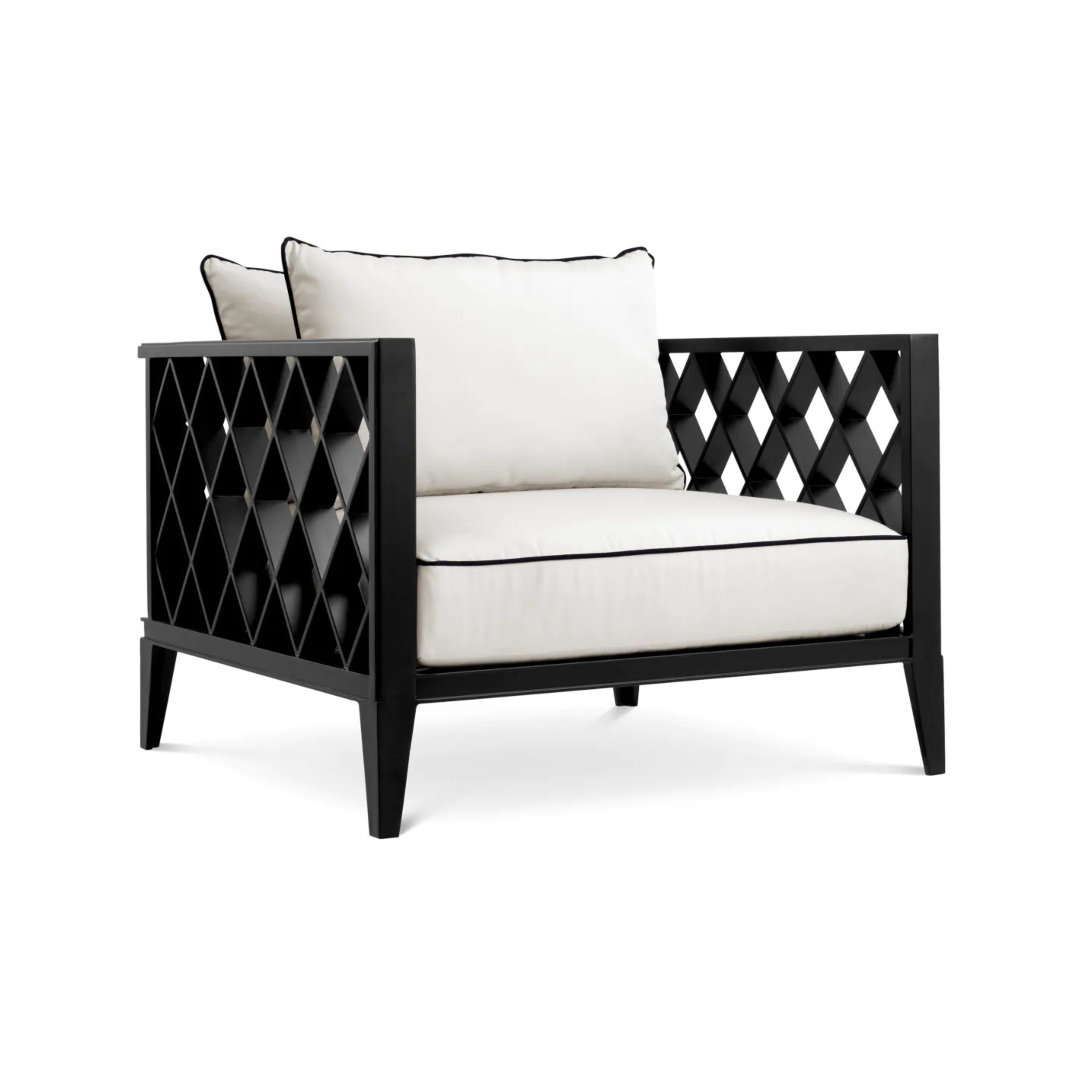 Zahradní křeslo Ocean Club je esencí moderní elegance na čerstvém vzduchu. Díky odolné konstrukci z hliníku v matném černém provedení a polštářům z látky Sunbrella v odstínu plátna, tento model nabízí nejen výjimečné pohodlí, ale i nadčasový vzhled.
