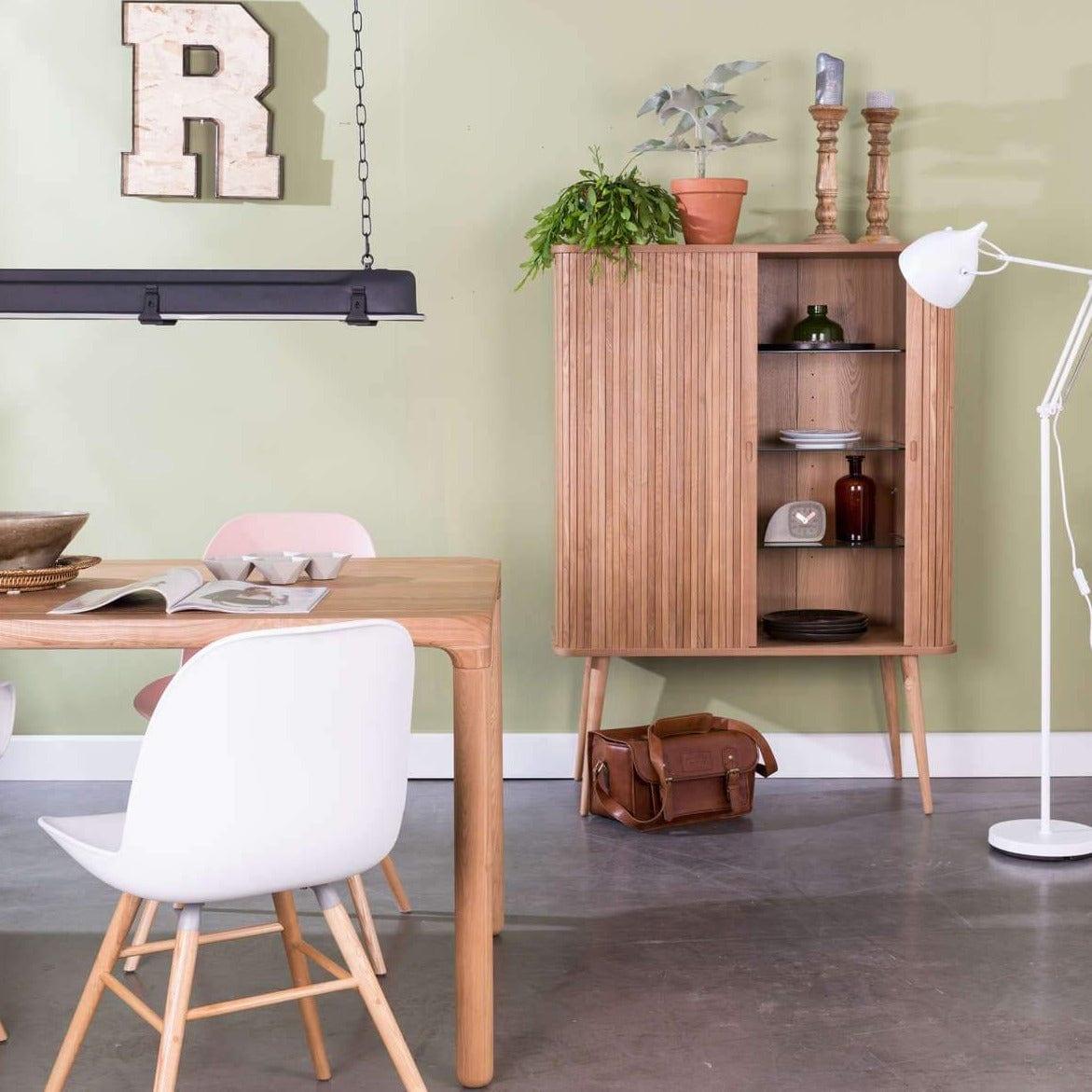 Skříňka byla vyrobena z odolné MDF desky pokryté jasanovým dřevem. Nohy jsou vyrobeny z masivního kaučukového dřeva. Barbier krásně doplní interiér jídelny, kanceláře nebo předsíně. Navíc vytvoří jedinečnou aranžaci s ostatním nábytkem ze stejné série.