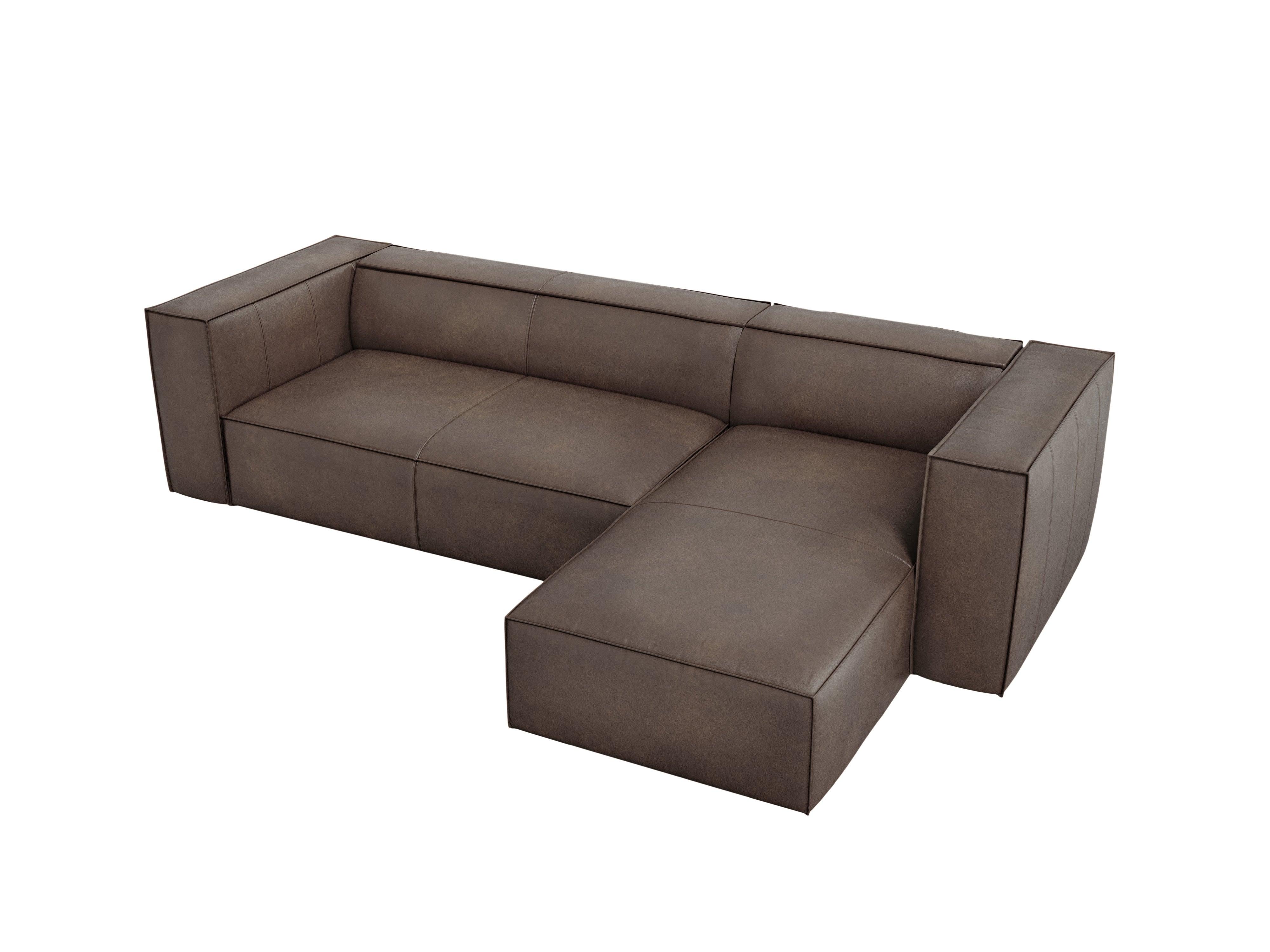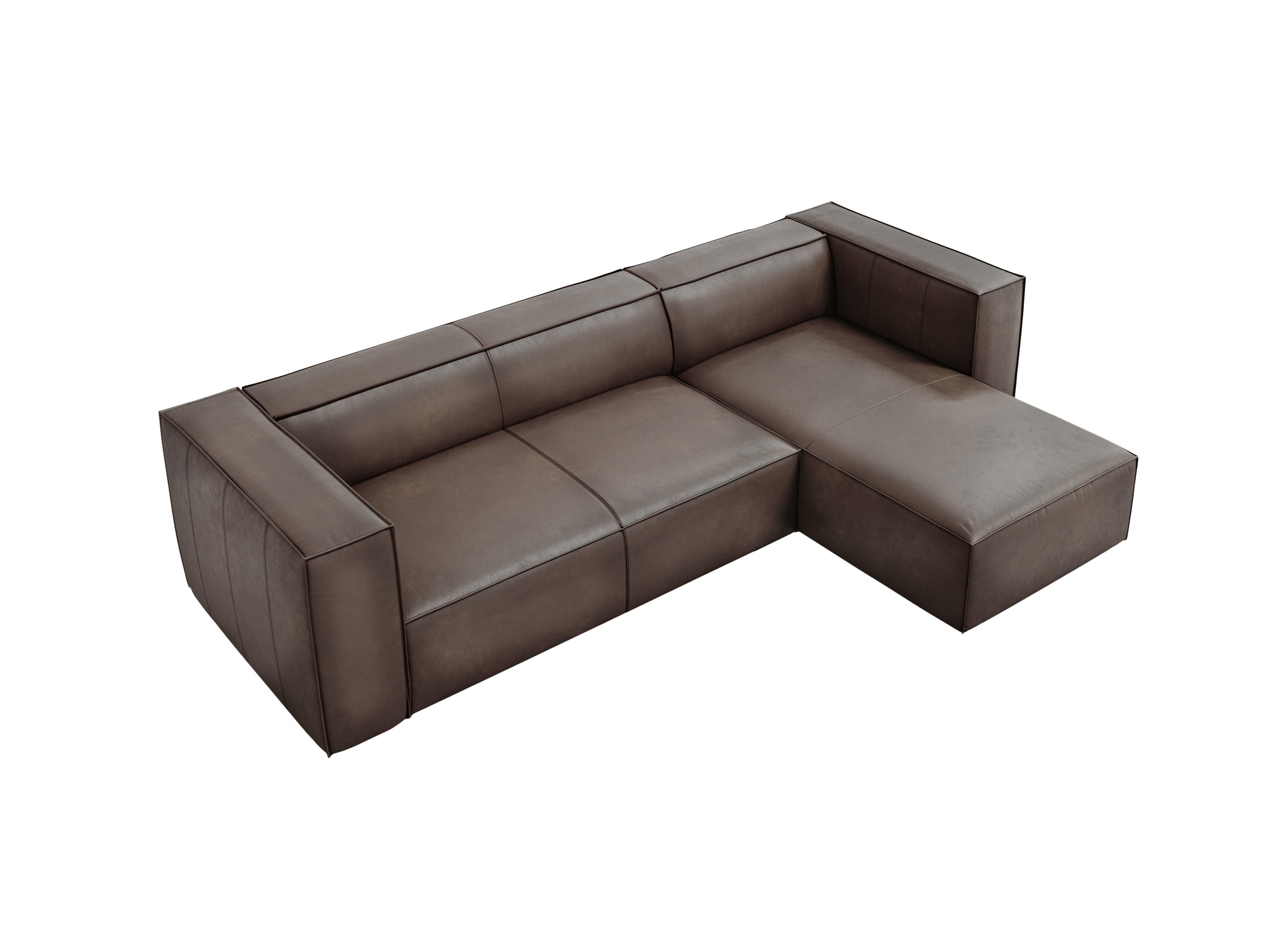 Kožený pravostranný rohový gauč MADAME olivově hnědý