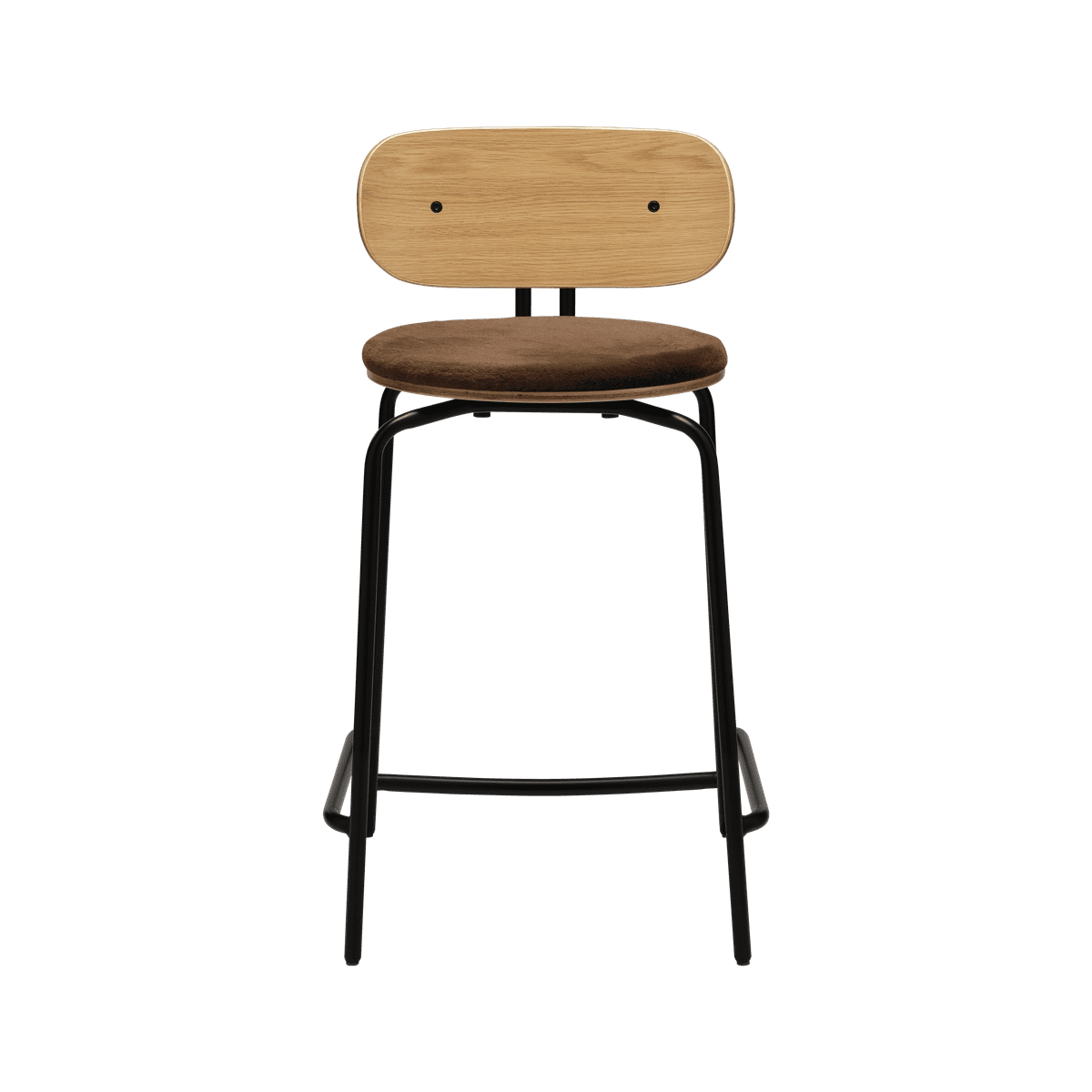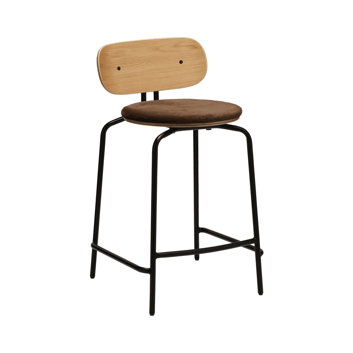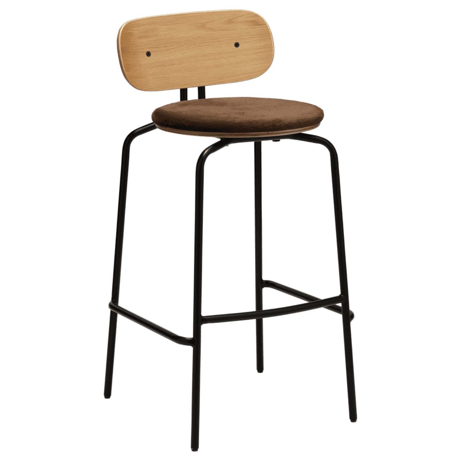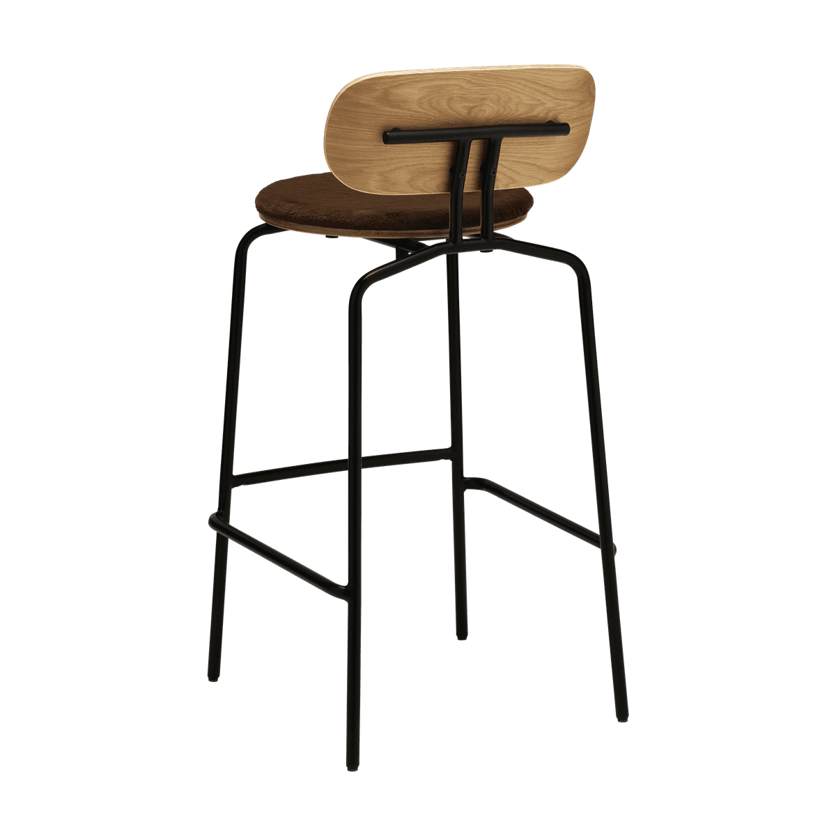Barová stolička Curious byla navržena s ohledem na komfort a estetiku – jednoduchá, kovová příčka slouží jako pohodlný opěrný stupínek, zajišťující přirozenou polohu při sezení a podporující dlouhé, uvolněné rozhovory.