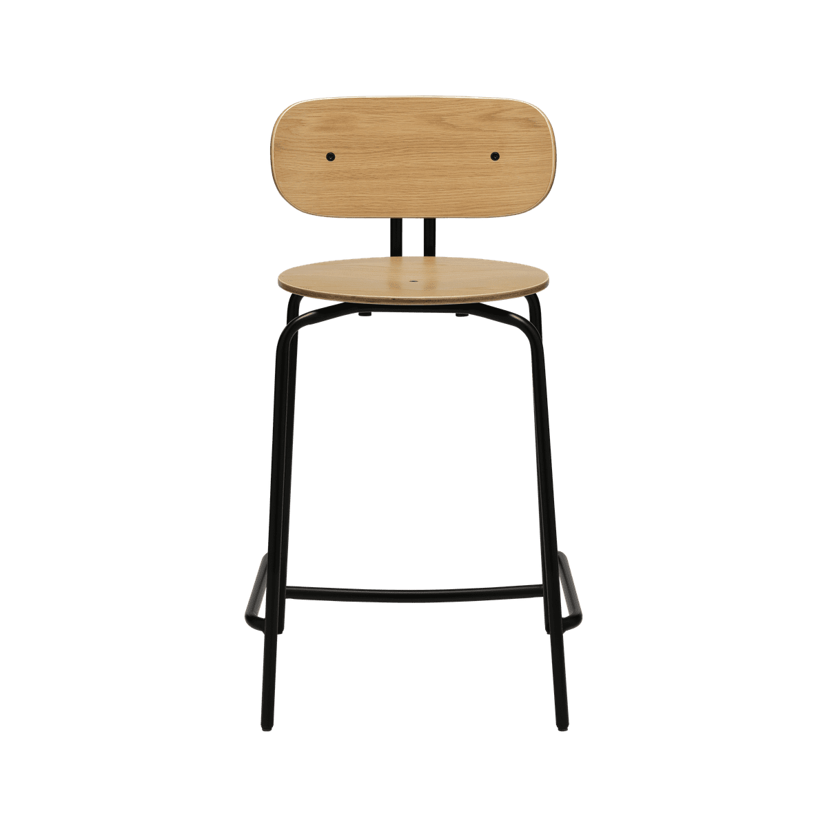Barová stolička Curious byla navržena s ohledem na komfort a estetiku – jednoduchá, kovová příčka slouží jako pohodlný opěrný stupínek, zajišťující přirozenou polohu při sezení a podporující dlouhé, uvolněné rozhovory.