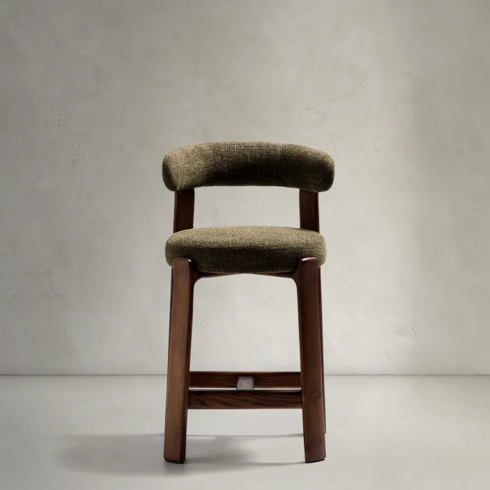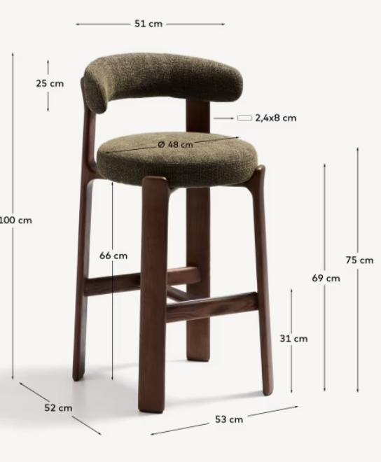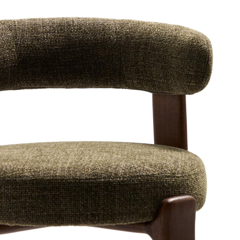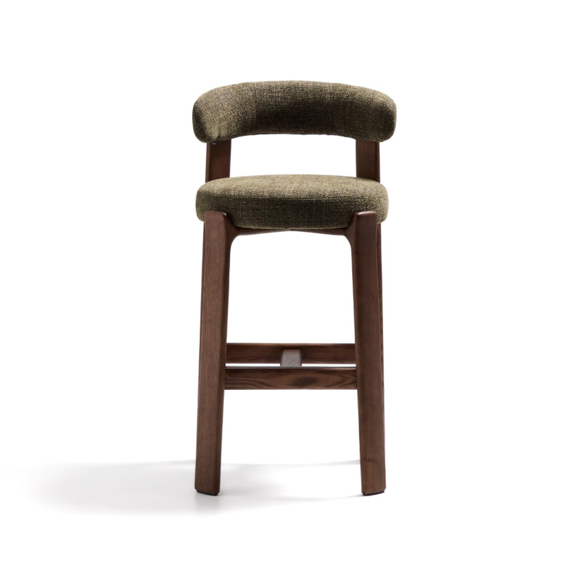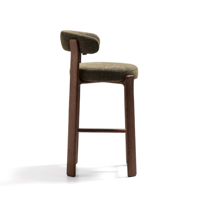 Tapicerowane siedzisko i oparcie pokryte zostały miękką tkaniną szenilową, tworząc efektowny kontrast z drewnem. Materiał jest nie tylko przyjemny w dotyku, ale również wyjątkowo trwały i przyjazny środowisku – wykonany częściowo z włókien pochodzących z recyklingu. Całość została zaprojektowana z myślą o komforcie – wygodne siedzisko, dobrze wyprofilowane oparcie i odpowiednia wysokość sprawiają, że Granite doskonale sprawdzi się przy kuchennej wyspie czy wysokim stole. To mebel, który nie tylko pięknie wygląda, ale też wnosi do wnętrza ciepło, lekkość i stylową równowagę. Idealny dla miłośników dobrego designu i naturalnych materiałów.