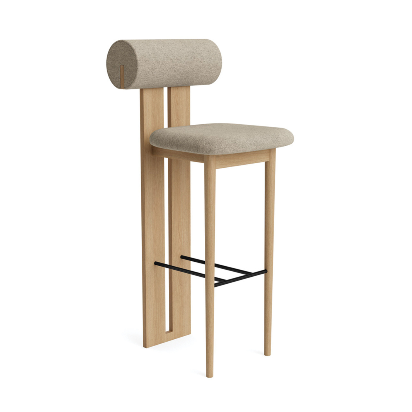 Hoker Hippo je jedinečný kus nábytku, který spojuje moderní design s nadčasovou elegancí. Charakteristické, masivní nohy z masivního dubu kontrastují s měkkým, zaobleným opěradlem a sedákem, čímž vytvářejí působivou, architektonickou formu. Díky tomu hoker vypadá skvěle jak zepředu, tak zezadu, a jeho jedinečná silueta přitahuje pozornost a dodává interiérům charakter. Je to ideální řešení do kuchyně, kuchyňského ostrůvku nebo domácího baru.