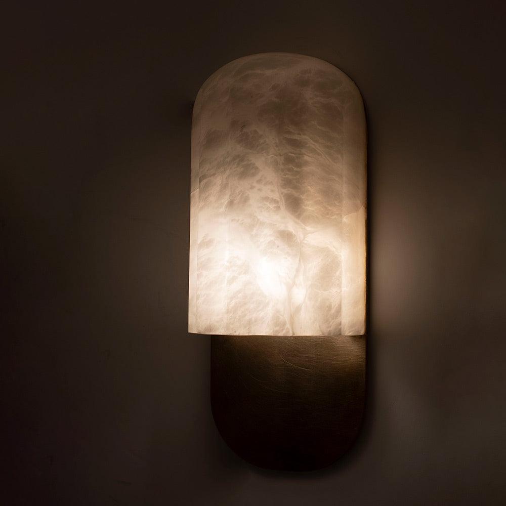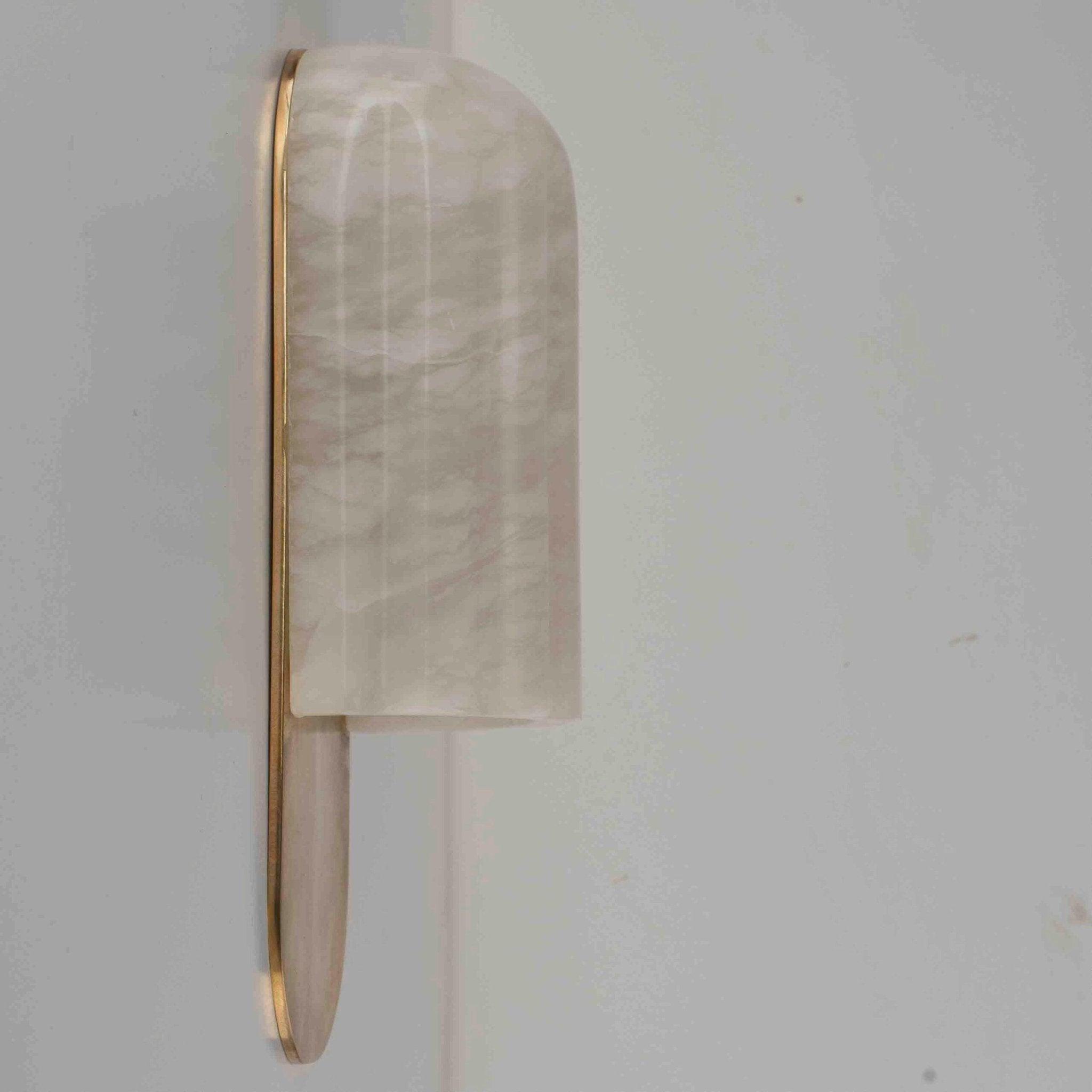 Klosz mosiężnego kinkietu Urania wykonany jest z wyjątkowego, naturalnego alabastru, przynosząc do Twojego wnętrza subtelną elegancję. Alabaster, przypominający najbardziej ceniony kamień antycznych czasów - marmur, charakteryzuje się unikalną zdolnością do przepuszczania światła, tworząc przyjemną atmosferę w pomieszczeniu.