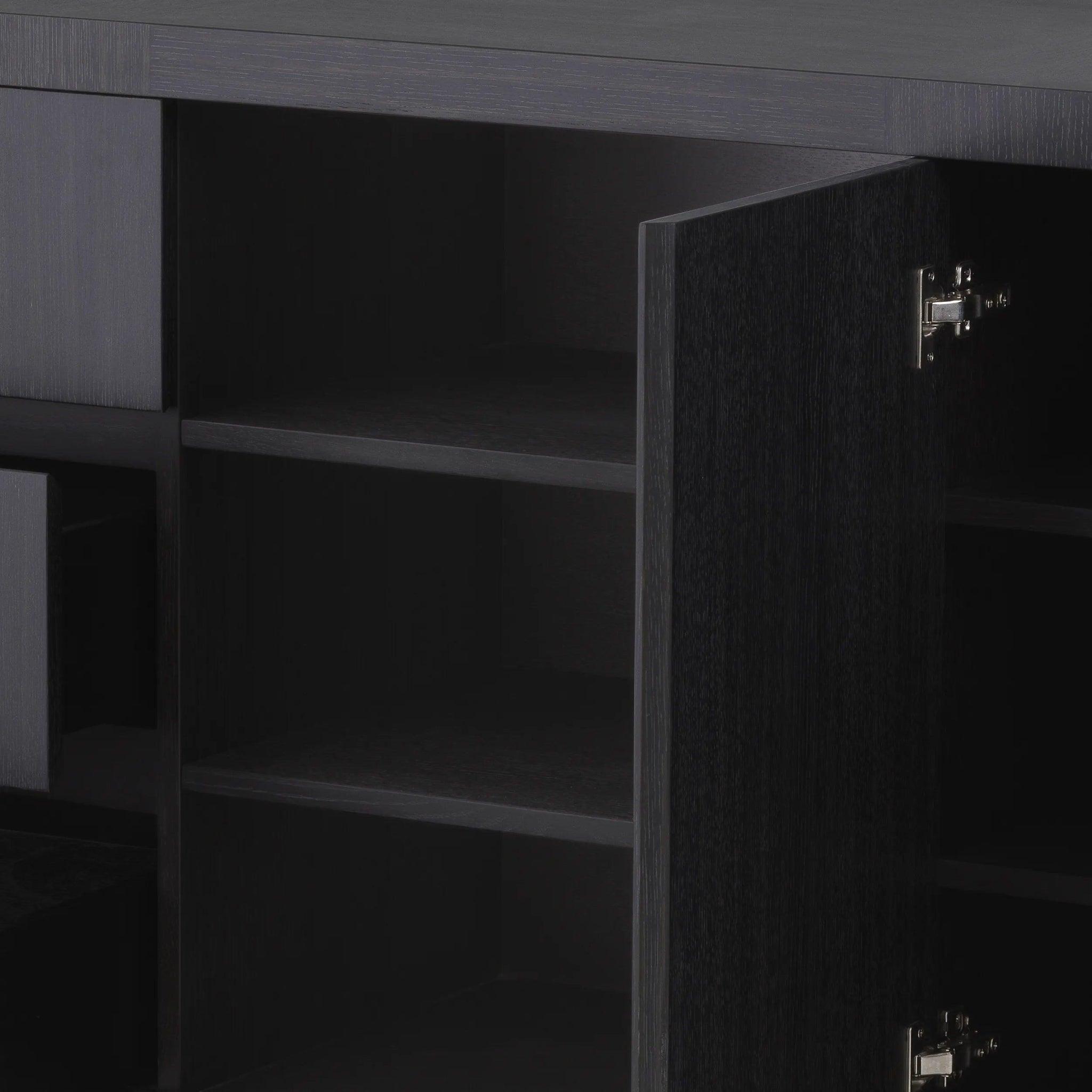 Vítejte ve svém interiéru s městským stylem a pevnou funkčností díky komodě Crosby v odstínu grafitové dubové dýhy. Toto spojení městské modernity, funkčnosti a robustní konstrukce obohatí váš obytný prostor.