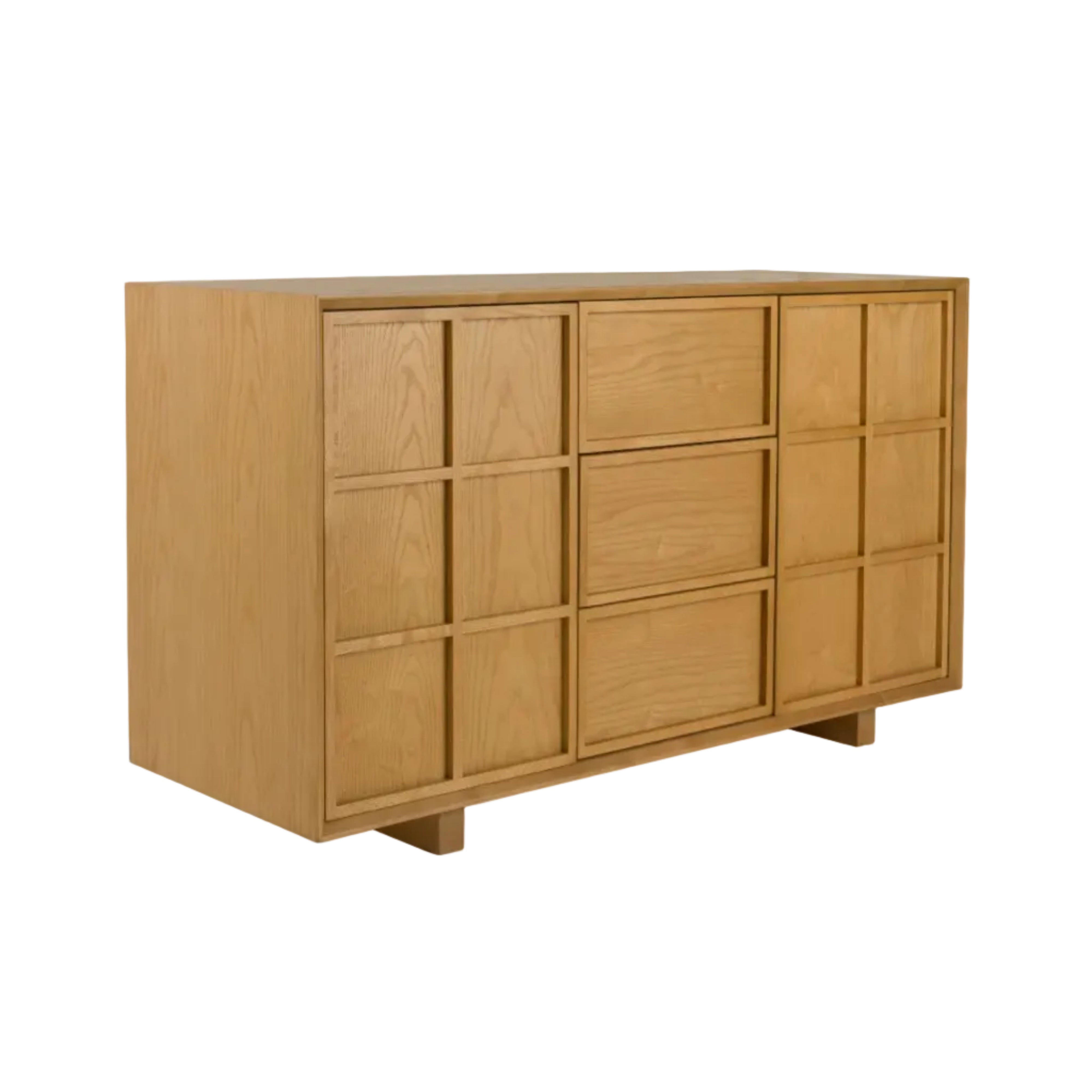 Komoda Raster je nábytek, který do interiéru vnáší klid a harmonii charakteristickou pro styl japandi. Čelní strany této komody zdobí dřevěné lišty uspořádané do geometrického vzoru kosočtverců, vytvářející jemnou hru světla a stínu. Díky tomu komoda získává výjimečnou vizuální hloubku a elegantní, architektonický charakter.
