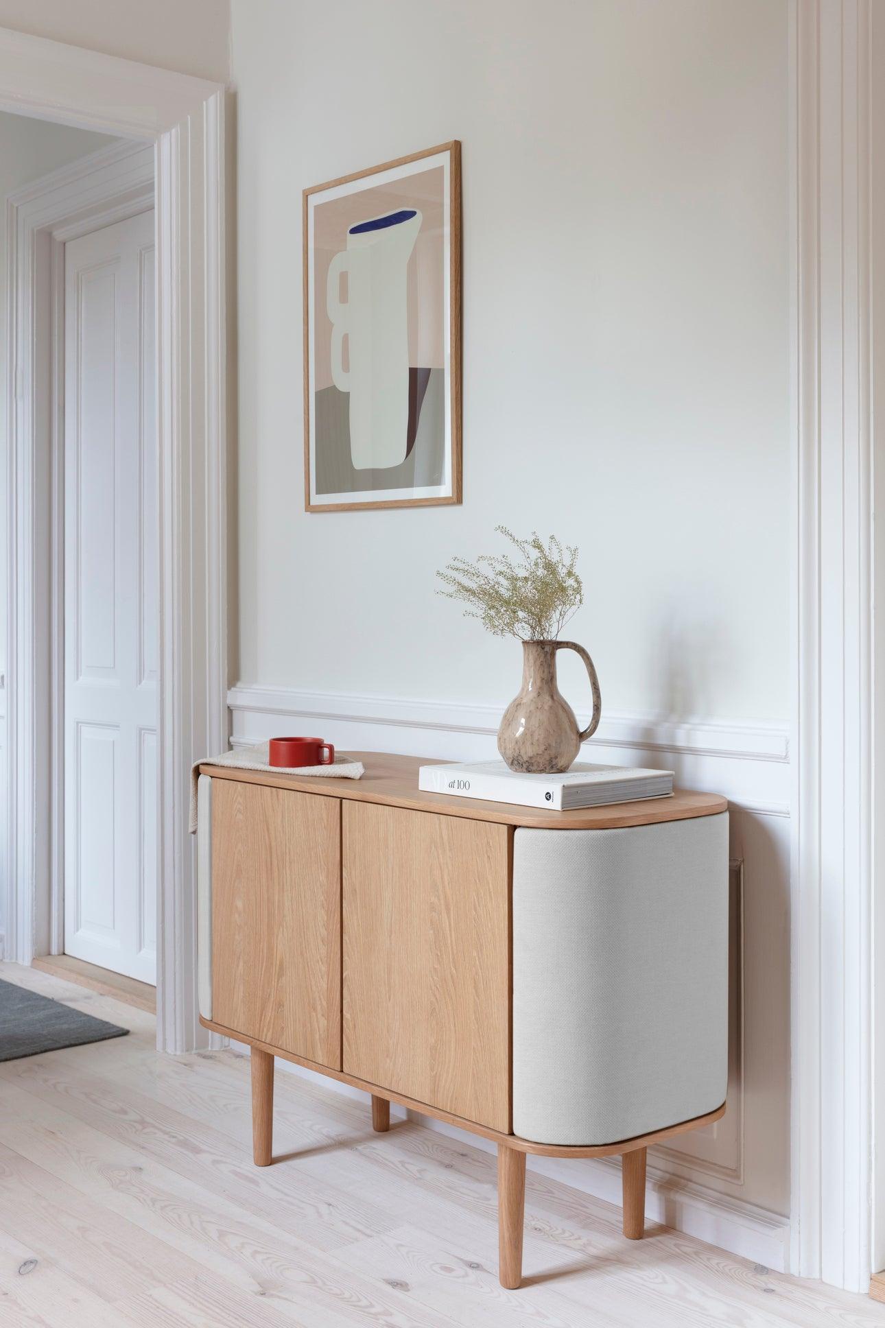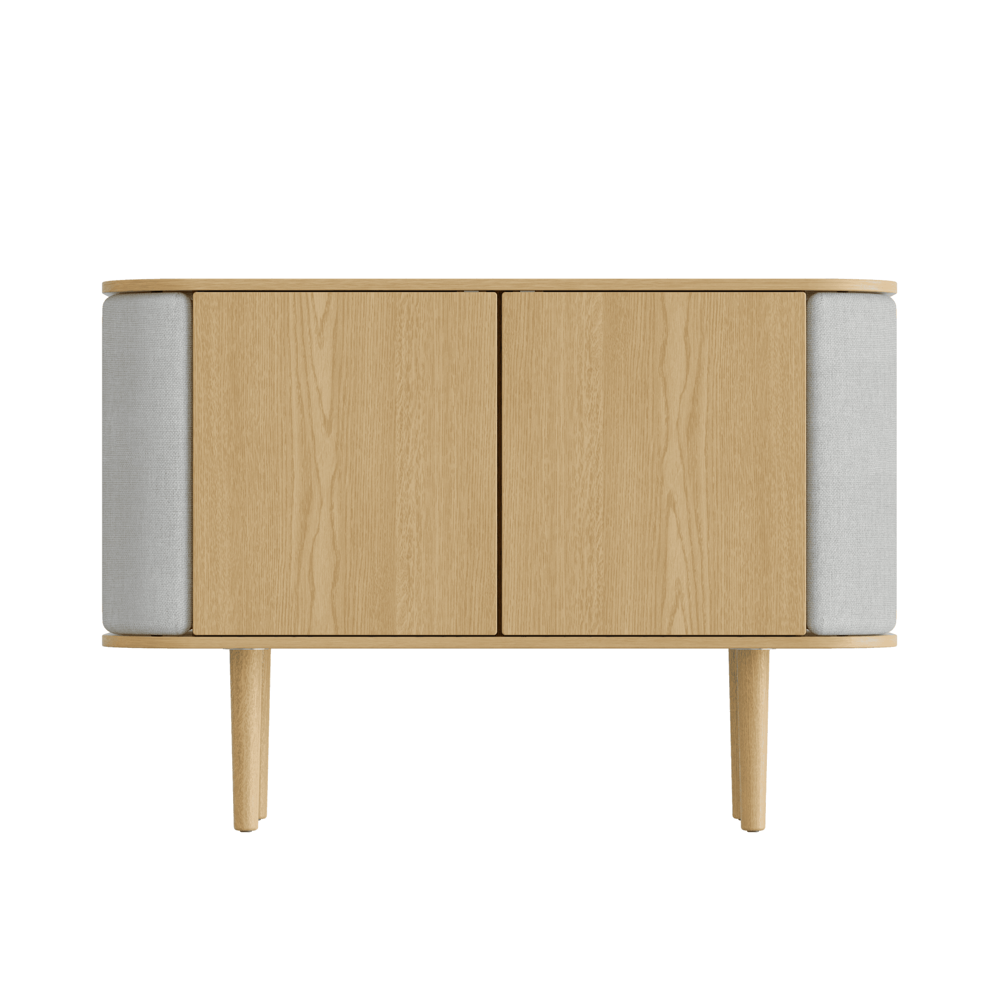 Komoda Treasures vyzařuje severským stylem. Její korpus je vyroben z dýhovaného dubového dřeva a zakřivené boky skříňky mají nastavitelnou ochranu, která dodává Treasures příjemný, měkký dotek.