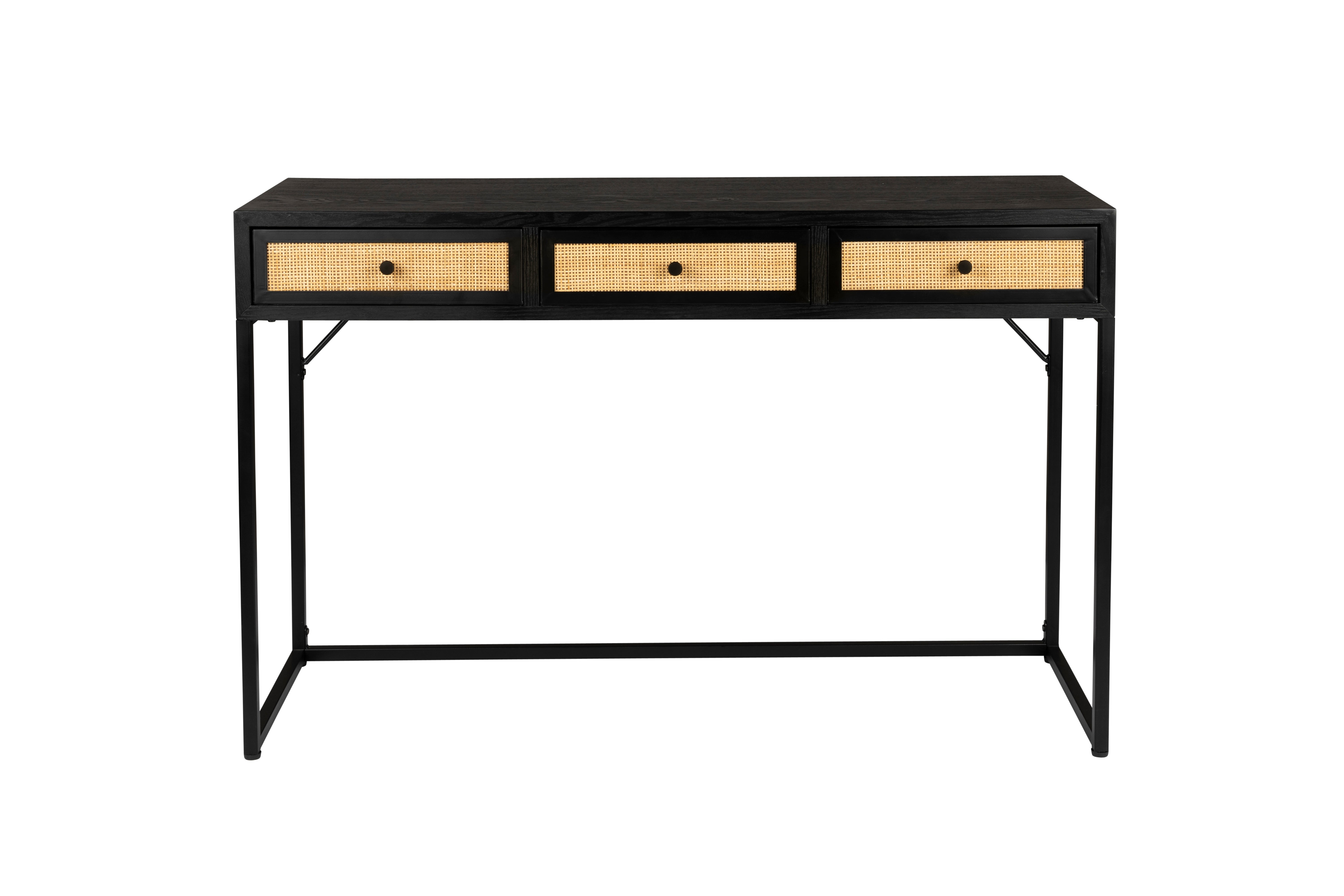 Konzole Guuji je elegantní a funkční nábytek, který dodá kouzlo každému interiéru. Vyrobená z pevného MDF dřeva a zdobená předními částmi zásuvek z přírodního ratanu, tato konzole se vyznačuje neotřelým designem. Nohy z práškově lakované oceli zajišťují stabilitu a trvanlivost, což garantuje dlouhou životnost nábytku. Konzole Guuji je vynikající volbou pro ty, kteří hledají stylové a praktické řešení pro svůj domov.