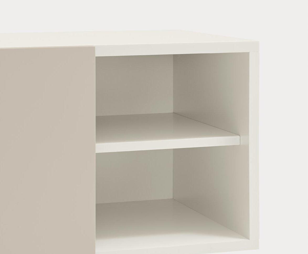 Konzole v jedinečné béžovo-bílé barvě. Kolekce Nube se vyznačuje neobyčejnou a výraznou konfigurací díky posuvným dveřím, které lze libovolně nastavovat podle individuálních preferencí. Způsob, jakým se tyto dveře posouvají po konzole Nube, odhalující a skrývající různé části jejího interiéru, čerpá inspiraci ze způsobu, jakým se mraky pohybují po obloze.