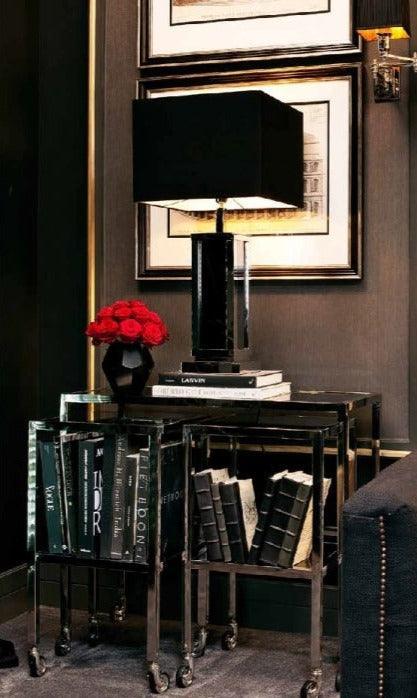 Konzole Palmer odkazuje na zlatou éru Art Deco, přinášející do Vašeho interiéru kousek luxusu a rafinovanosti. Lesklý, zlatý povrch nerezové oceli v kombinaci s tvrzeným černým sklem na desce vytváří harmonickou kompozici, která je jak stylová, tak funkční.