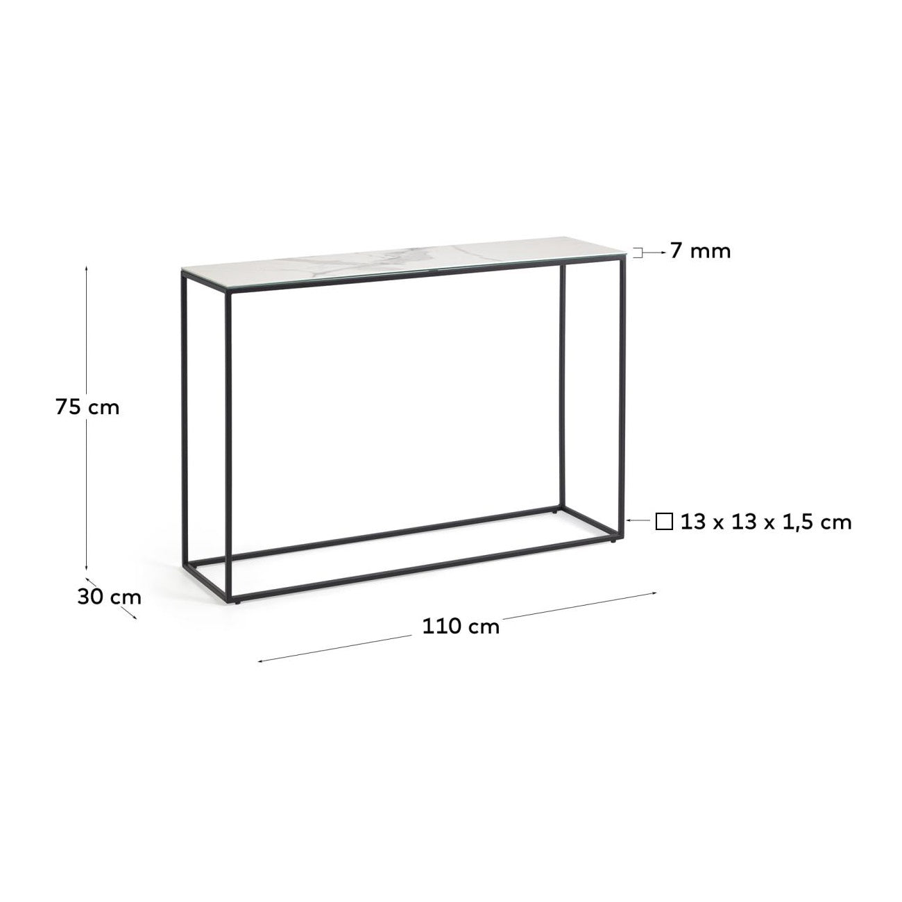 Keramický povrch bílé konzole Rewena je symbolem rafinovaného vkusu a estetiky. Výběr tohoto exkluzivního materiálu dodává místnosti jedinečný charakter, zatímco vytváří trvanlivý a snadno udržovatelný povrch. Pevná ocelová konstrukce tvoří nejen základ, ale také jemný kontrast, čímž vytváří rovnováhu mezi moderností a solidností.