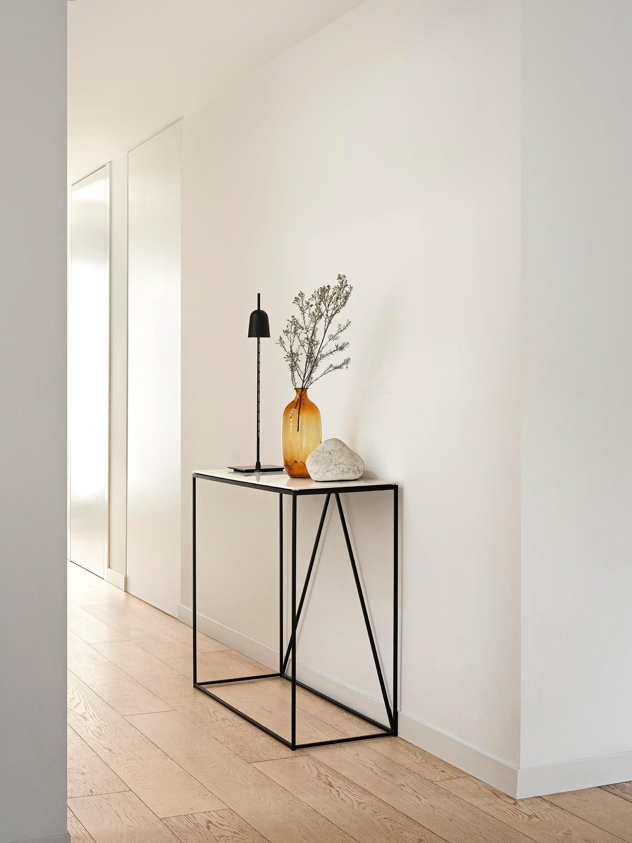 Kolekcja stolików Thin emanuje przestronną atmosferą i charakteryzuje się minimalistyczną geometrią. Ta konsola płynnie łączy elementy stylu industrialnego, charakteryzując się harmonijnym połączeniem metalu i blachy. Jego nowoczesny design zapewnia kompatybilność z każdym wystrojem, a nawet zapewnia opcję wykwintnego marmurowego blatu ceramicznego.