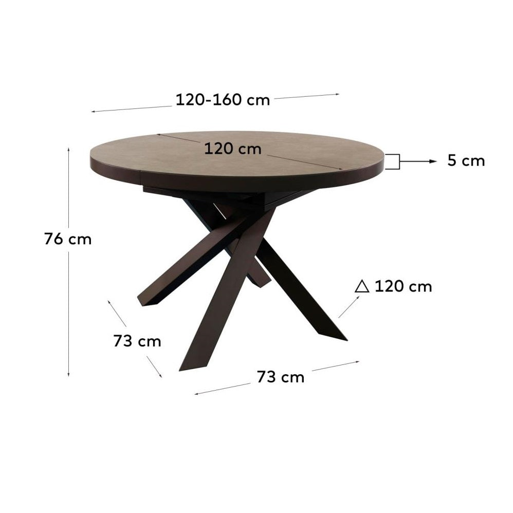 Rozkládací kulatý stůl VASHTI s porcelánovou deskou a hnědou základnou