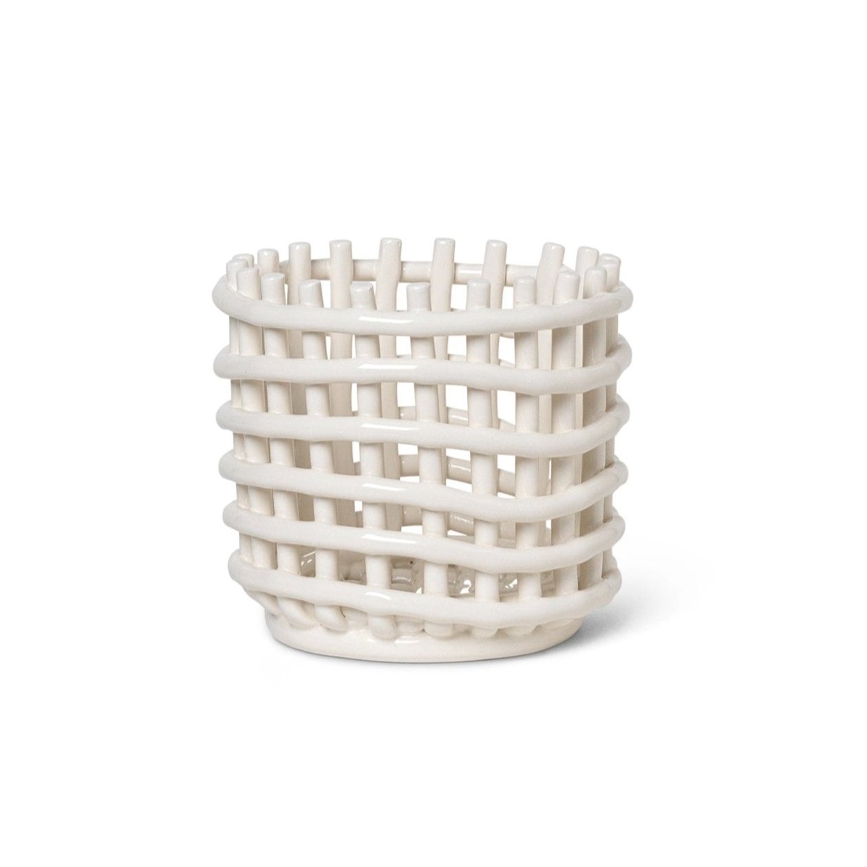 Košík Ceramický koš přenáší tradiční pletenářské techniky do světa keramiky. Ručně vyrobený koš reprodukuje známý vzhled pletených nádob, spojující estetiku s funkčností. Můžete ho využít jako květináč, mísu na ovoce nebo dekorativní prvek v interiéru. Každý koš je ručně vyřezávaný a jemně nepravidelný, díky čemuž je každý kus jedinečný.