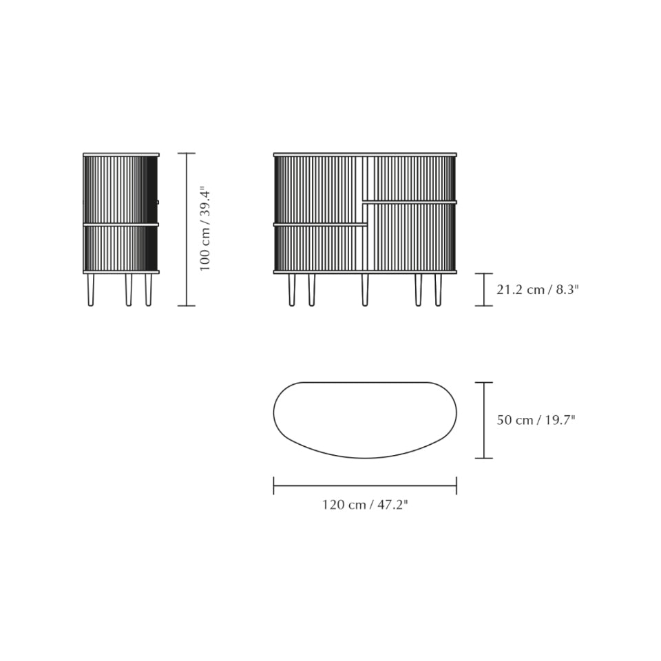 Kredenc Audacious je nesmírně praktická skříňka, ideální pro umístění v obývacím pokoji nebo v jakékoli jiné místnosti, kde potřebujete místo na uskladnění. Vyznačuje se severským, ale odvážným stylem, a posuvné látkové žaluzie jí dodávají nostalgický, a přitom moderní charakter.