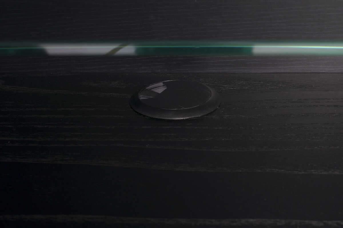 Komoda byla vyrobena z odolné MDF desky pokryté černým dubem. Nohy jsou vyrobeny z masivního kaučukového dřeva.