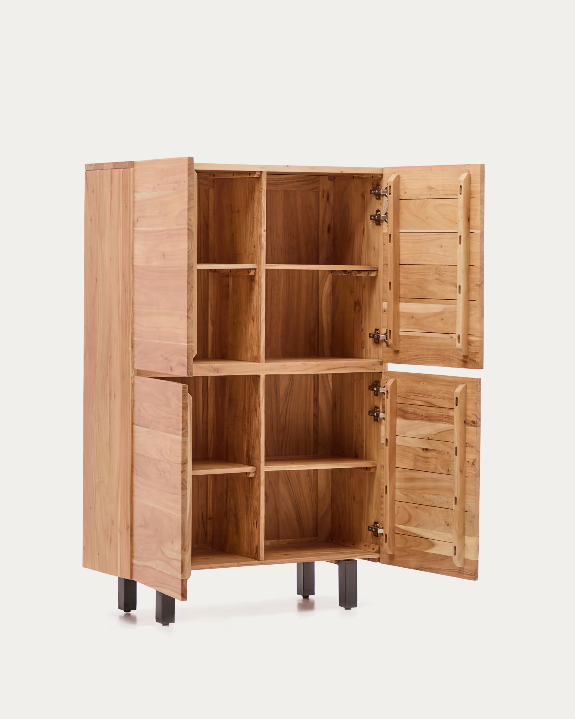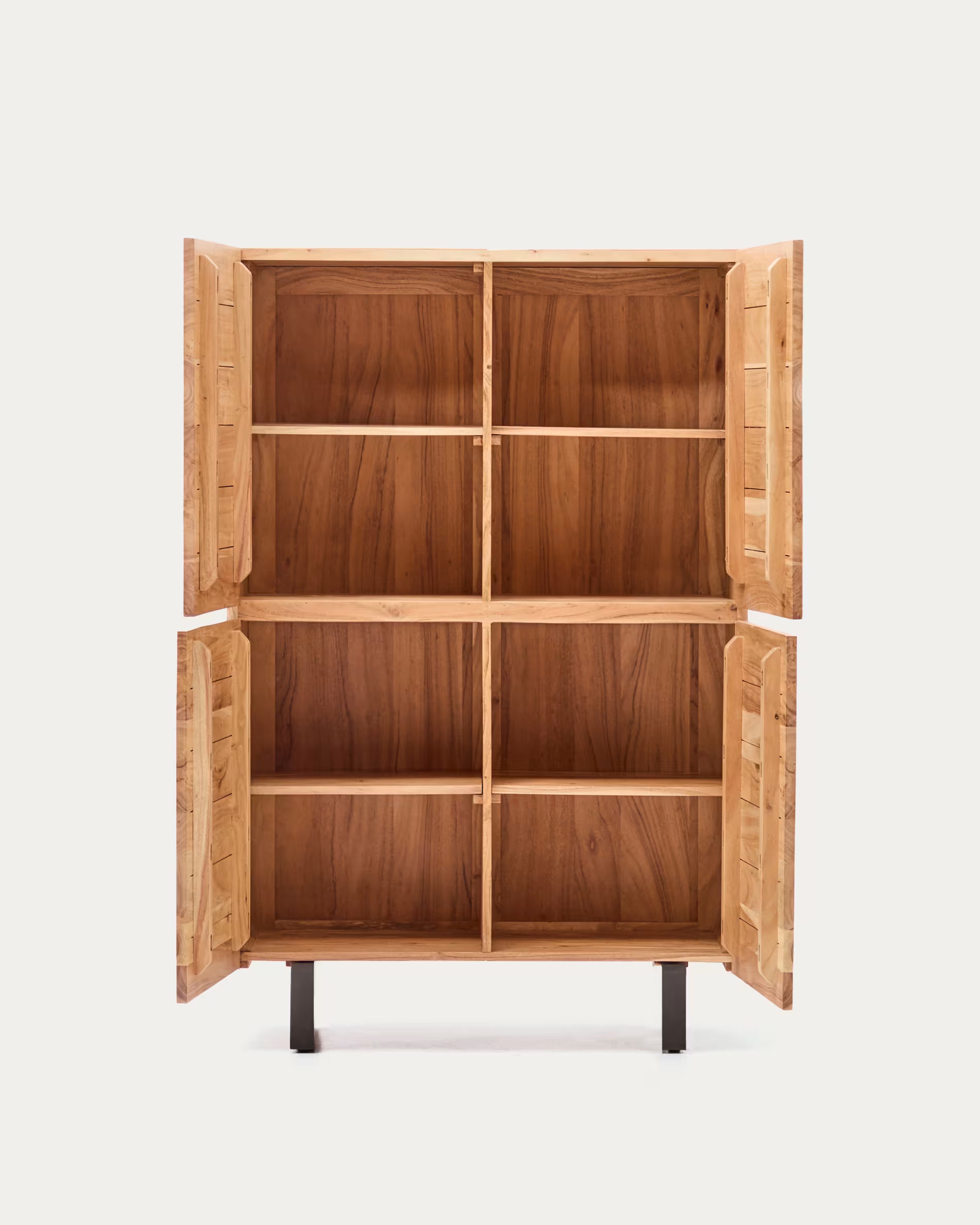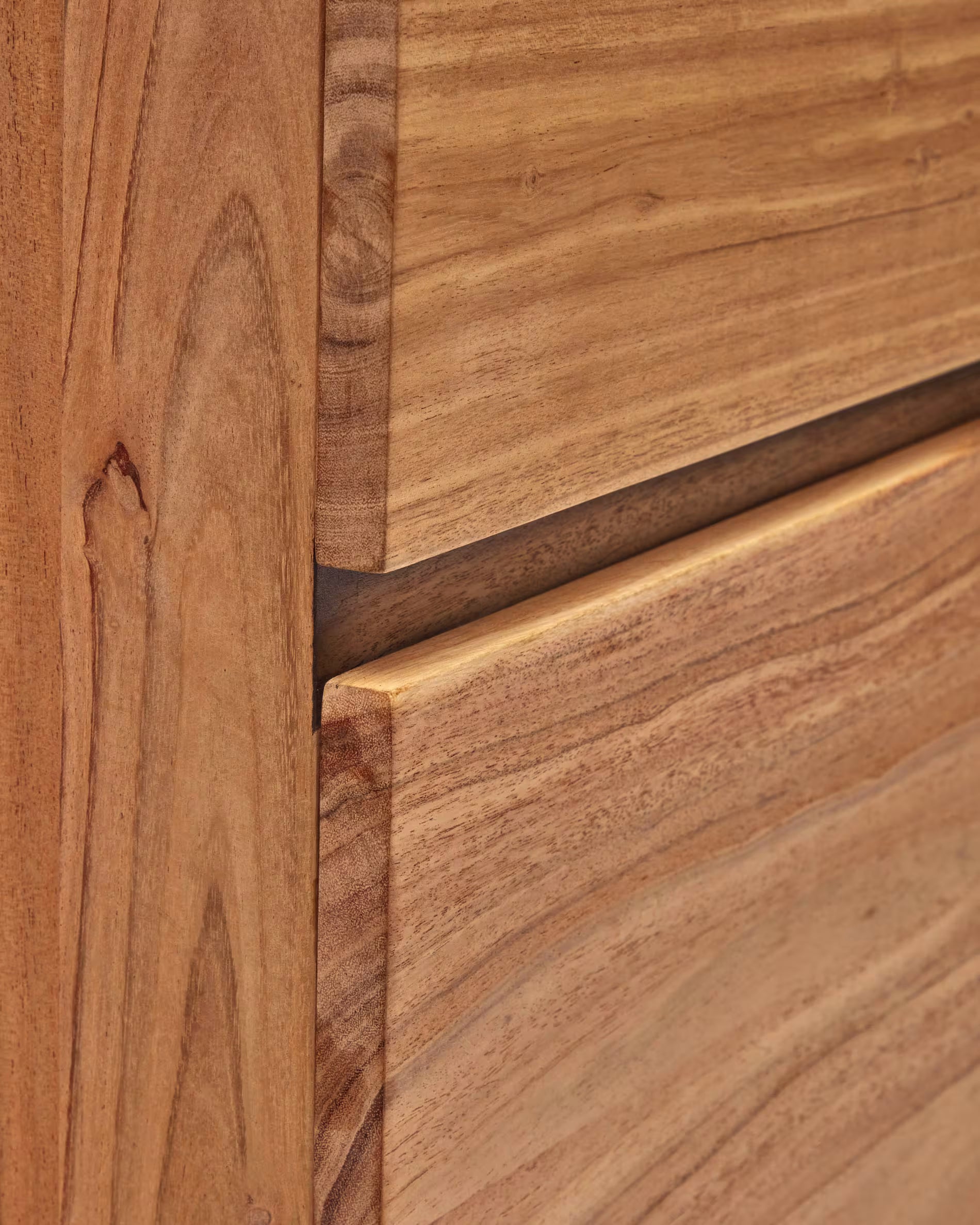 Ten wyjątkowy kredens z kolekcji Uxue to połączenie ponadczasowej elegancji i praktyczności, które doskonale wpisze się w każde wnętrze. Wykonany z litego drewna akacjowego z bielonym wykończeniem, zachwyca naturalnym usłojeniem i ciepłym charakterem, nadając przestrzeni jasności i wyjątkowego uroku. Subtelne, zintegrowane drzwi podkreślają minimalistyczny design, dzięki czemu mebel idealnie komponuje się zarówno z nowoczesnymi, jak i klasycznymi aranżacjami.